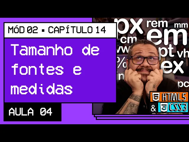 e vamos dar continuidade aos estudos do Capítulo 14 onde a gente tá falando sobre Fontes [Música] [Aplausos] E aí [Música] o Olá tudo bem com você seja bem-vindo seja bem-vindo a mais uma aula aqui do seu curso de html com CSS estamos falando sobre o conteúdo e sobre estilo Agora nós estamos falando mais sobre estilo nós estamos nos focando que nós poder estilo e nós estamos trabalhando a partir de fontes já falou sobre cores Agora estamos falando sobre fontes e nessa aula a gente vai falar sobre tamanhos e tamanhos é a tamanho uma coisa meio complicada de discutir com as pessoas então basicamente eu vou fazer seguir recomendações do w3c que é o que eu recomendo que você faça também mesmo que a recomendação de outras pessoas que seja a outra régua não trabalha com ponto trabalha com pizza recomendamos seguir o que a w3c que o órgão principal para fazer exatamente isso a gente vai fazer um falar um pouco sobre tamanhos de fontes a partir de agora vamos fazer mais uma pequena pausa aqui no nosso curso de html para a gente trazer mais um recado da Record para você e o mercado de hoje talvez não sirva exclusivamente para você porque provavelmente você já a tomada acostumada com tecnologia Mas saiba que na plataforma da Record existem cursos para quem tá começando o mesmo que talvez você tenha um parente um conhecido que não esteja tão interessado em desenvolvimento mas que precisa aprender os primeiros passos da tecnologia EA República tem alguns cursos muito importante para quem tá precisando daquela primeira mãozinha o que precisa de algum certificado e de algumas ferramentas bem simples os cursos que eu trouxe para falar sobre eles aqui são um desvendando o Windows que mostra os primeiros passos no sistema operacional o Word na prática onde eles ensinam a aplicar o editor de textos da Microsoft em situações do dia a dia e do mercado de trabalho no Excel na real que ensina a utilizar planilhas eletrônicas em coisas cotidianas em um PPT para apresentação e vai te ensinar como fazer e dar dicas como fazer apresentações utilizando o PowerPoint para fazer qualquer um desses cursos é só você apontar a câmera do seu celular por código que tá aparecendo aqui na tela e você vai ser enviado diretamente para uma página Alô especial do conferir uma explicação de cada uma dessas oportunidades Obrigado recolhido pelo Patrocínio e por oferecer tantos cursos interessantes para os nossos valores Então vamos lá esse aqui é o exercício que a gente criou na aula passada tá vou até tirar as configurações de alguém jogadores aqui a gente ficar só com as configurações do bar Então tá lá normal tamanho de fonte é o seguinte Existem várias formas da gente colocar um fonte faz tá é o Font size ele pode ser medido ó existem que a gente chama deixa eu colocar aqui algumas observações anota esse que nem no pdf eu coloquei a a gente tem as medidas absolutas e a gente tem as medidas relativas às medidas absolutas elas são os centímetro ou milímetro a polegada a nota que você quer polegada tá existe também o Pixel o ponto EA paica tá basicamente essa daqui são medidas absolutas um centímetro é um centímetro só que a gente tem um grande e na hora de representar isso as vezes o navegador não consegue chegar exatamente um centímetro porque existem telas de tamanhos diferentes a sua TV de 50 polegadas ela vai mostrar de um jeito o teu celular que aquela pequenininha a mostrar de outra o seu tablet Pode mostrar de outra então centímetros e milímetros são medidas absolutas o teu site vai tá montado com a medida né utilizada só que a apresentação pode ser diferente Terra temos que é importante até o Pixel porque tem dispositivos por exemplo telas de alta resolução podem utilizar pixels de 4 componentes a Apple tem um nome para essa tela já esqueci a retina as telas retina é um pixel não é um pixel é um quarto de pixel então fica complicado a gente trabalha também com isso. E pai cá são medidas da tipografia de papel então sem ponto e não se recomenda utilizar em material impresso em tela tá material que vai ser exibido em telas Então apesar de que eu sempre utilizei. Né erradamente assim e mais é são as medidas letras absolutas as medidas relativas também são várias a gente tem o m que a medida relativa ao tamanho atual da fonte a gente tem Oeste que é relativo à altura x de uma fonte para o Guanabara o quê que é a altura isso aqui é altura M esse aqui é outra x altura e me é relativo ao m maiúsculo de uma letra de uma determinada fonte oeste é o tamanho da altura x de uma fonte Me explica aí já te expliquei no primeiro vídeo dessa série no primeiro no segundo vídeo desse capítulo que eu falei sobre a outra x Então segue lá a gente tem RM que é tipo é m só que ao relativo ao root a fonte que está configurada no Bari a gente tem também o viu Winder quer dizer largura da viewport logo a viewport é o tamanho da sua então aquela pequenininha Desce aqui ela tem uma viewport ela tem um tamanho de tela uma tela de monitor monitor de um notebook tem outro bom então isso aqui é porcentagem da viewport da largura da viewport também eu posso usar o VH que é a altura da viewport eu posso trabalhar também com porcentagem existem outras medidas relativas Tá mas normalmente a gente vai utilizar basicamente o m eu vou te mostrar nessa aula como trabalhar com o m né que a altura do m maiúsculo que inclusive como eu falei ah vamos utilizar com a gente combinações da w3c para a medida de fonte para o Font size ele recomenda o uso do PX e o uso do M somente essas duas medidas aqui tá é exatamente acho que eu vou representar para você não use centímetro milímetro polegada.