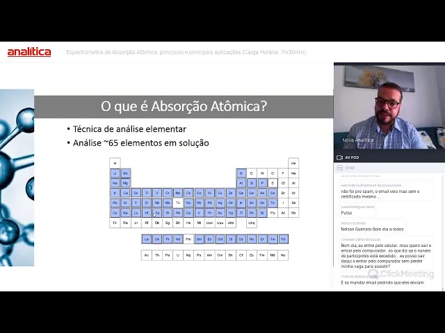 E aí e pronto agora sim gravando então vamos lá já que procedimentos é só apresentante para quem ainda não me conhece quem ainda não participou dos outros doer meu nome é bruno menezes queira eu sou químico de formação hoje atua como gerente de produto na nova analítica essa parte de espectrometria atômica né cuidando das linhas de absorção atômica é isso aqui ó tipo você Queimar e fluorescência de raio-x também em breve a gente vai ter novidades em 10 anos de experiência nessa área nova analítica uma empresa você já devem conhecer isso também passar o analítica