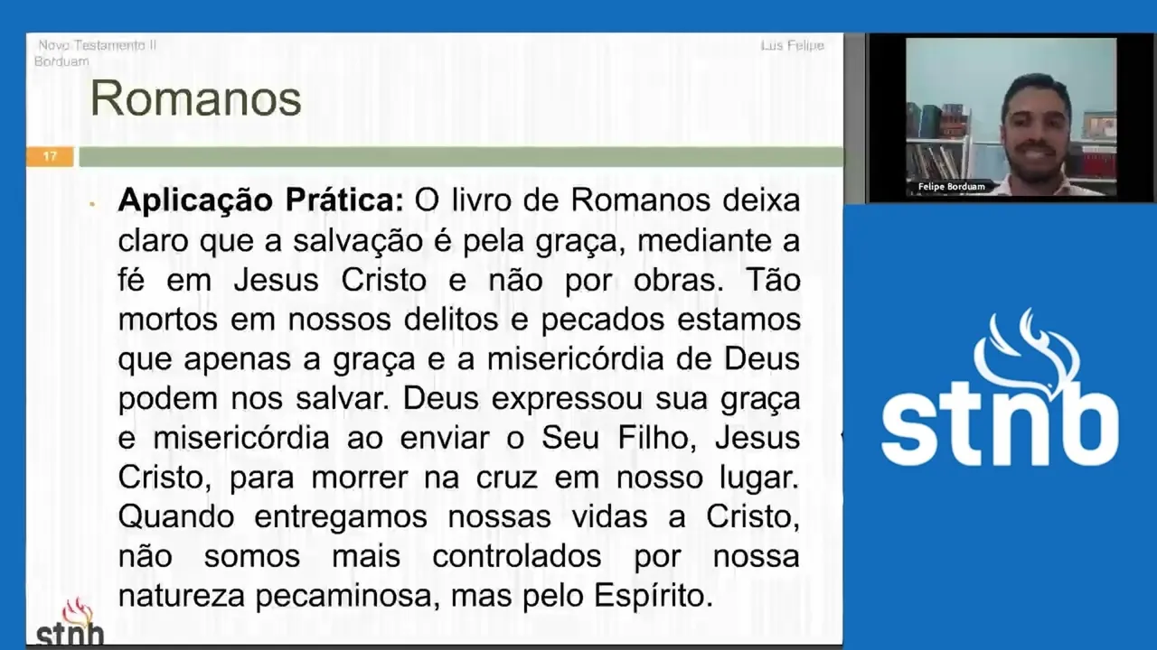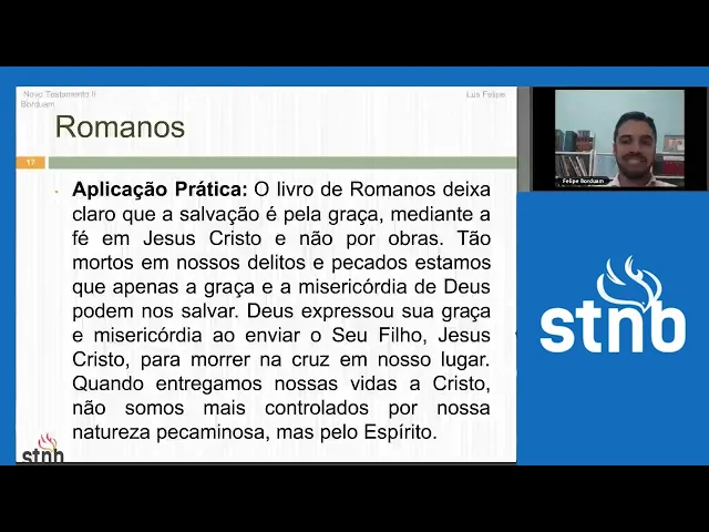 [Música] bem sobre eh Romanos nós precisamos né Eh compreender que essa epístola é uma epístola muito singular porque ela é uma é um divisor de águas né no cristianismo tá quem vai se valer muito né da carta aos romanos eh além de Santo Agostinho né Bispo de pona Vai ser todo o protestantismo então Romanos ele é é uma epístola que vai ter uma marca muito forte na história do protestantismo nós vamos ver Martinho Lutero tendo a sua experiência né que vai romper com a crença do catolicismo romano com a tradição Romana através da leitura de