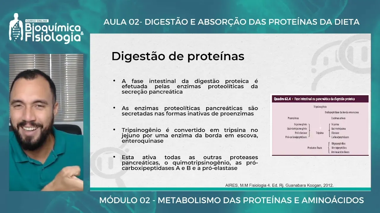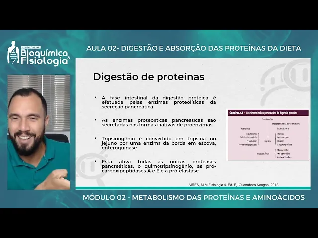 Olá tudo bem seja muito bem-vindo a mais uma aula né dando continuidade ao nosso módulo de proteínas nós iremos falar nós iremos entender um pouco como é que funciona o processo de digestão e absorção dessa aula O objetivo dessa aula é mostrar para vocês como é que o nosso corpo como é que nós digerimos né e absorvemos as proteínas da dieta então só pra gente entender uma questão a gente terminou né na aula passada falando sobre a a importância da estrutura das proteínas né dos agentes que desnaturam essas proteínas e o quão ruim isso é
