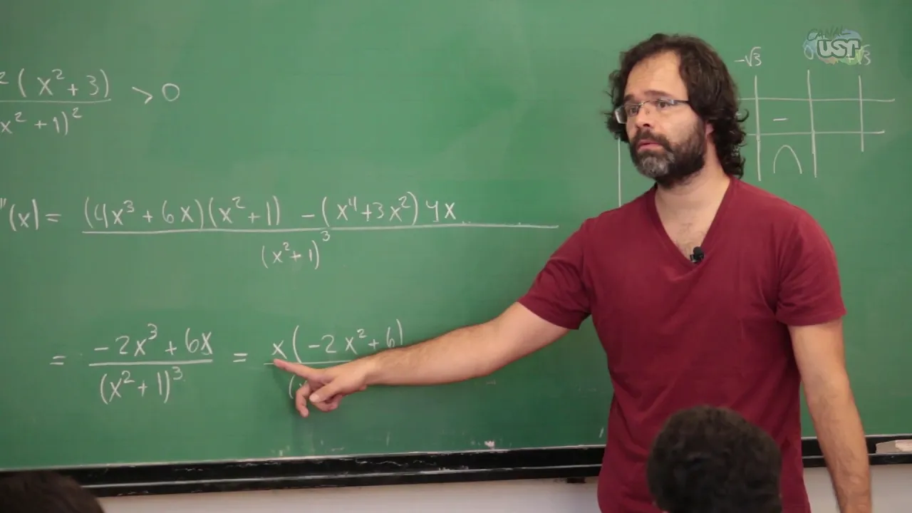 mais nenhum constante também não tem ninguém só faltou alguma coisa que é isso né oi era mais né é isso então o que a gente tem obrigado era um x quadrado mais um ac x a quarta mais 3 x quadrado e portanto que a gente conclui que não tem ponto de máxima e mínima o derivado é sempre positiva essa função é estritamente crescente obrigado tá bom e aí a gente tem um problema né tem que refazer tudo vamos arrumar ali a gente tem x a quarta quando ele vá que vai ficar mais certo aqui é