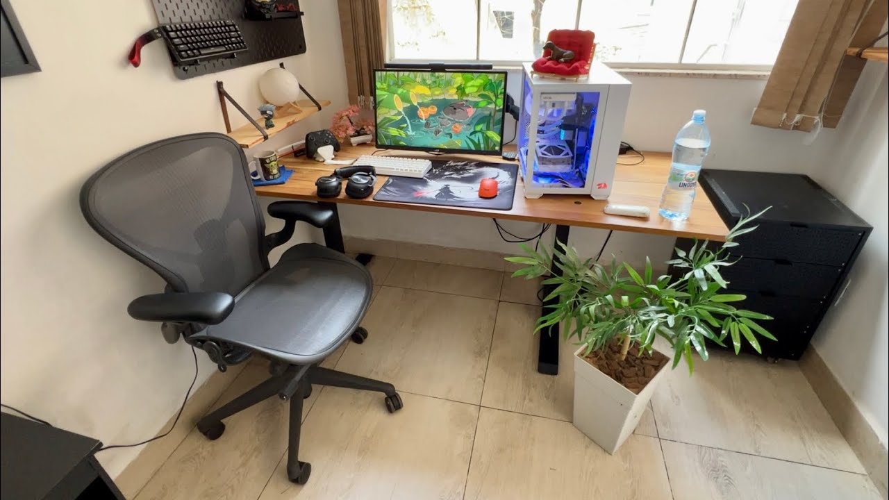 fiz pro arquiteto É que eu queria que a mesa fosse nessa parte aqui perto da janela do lado esquerdo que atualmente é desse jeito aí sem nada Ali vai fazer esse móvel para colocar ali vai ter bastante espaço para colocar muita coisa ali né cara olha só Aí vai dar para colocar também alguns enfeites tem até uma plaquinha do YouTube ali né o LED aqui assim aqui também vai ter muito espaço para colocar muita coisa tem até uma catana aqui velho cara será que dá para encontrar uma catana dessa cara eu tô achando vou comprar