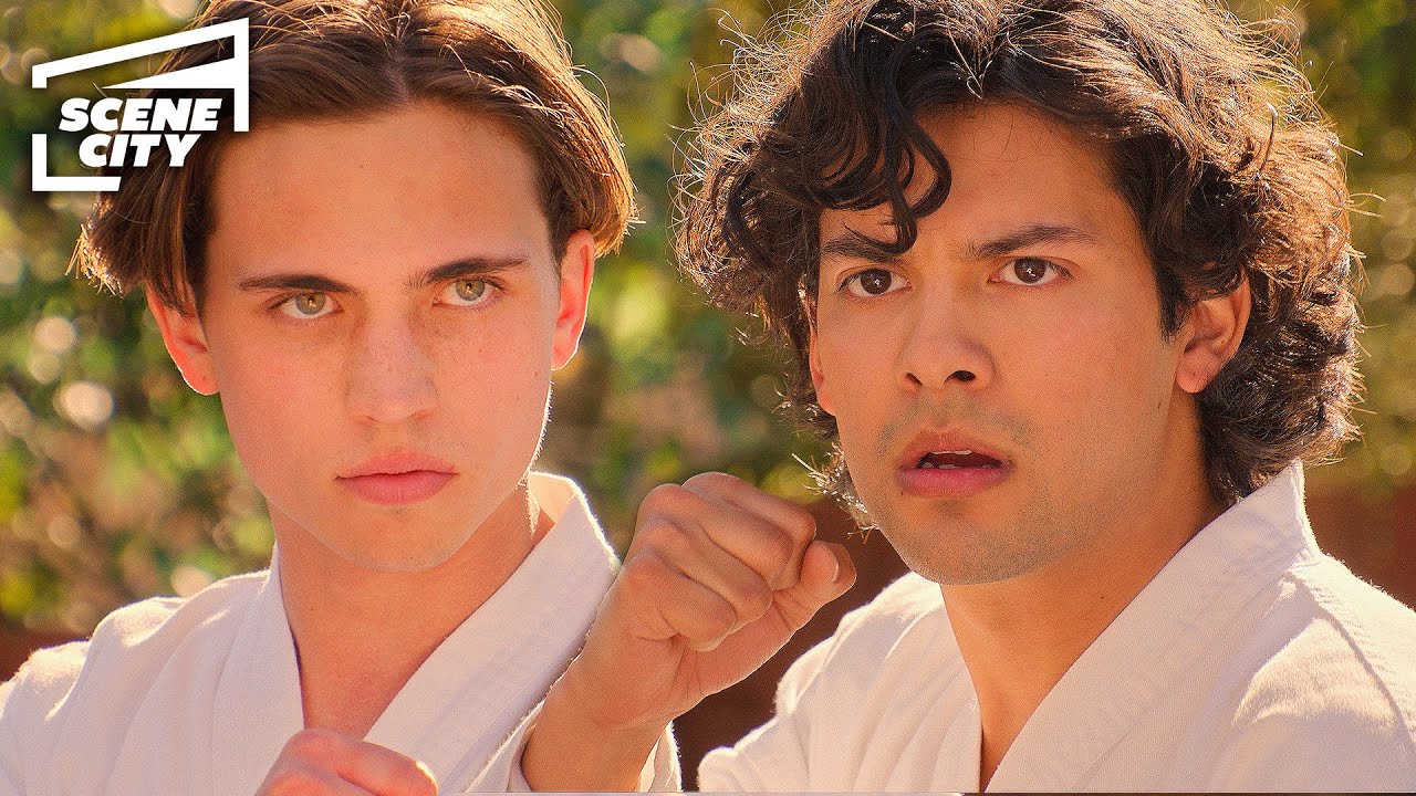 Você vai por baixo, eu vou por cima. Os dois capitães do Cobra Kai estão no chão. O Iron Drgons venceu.