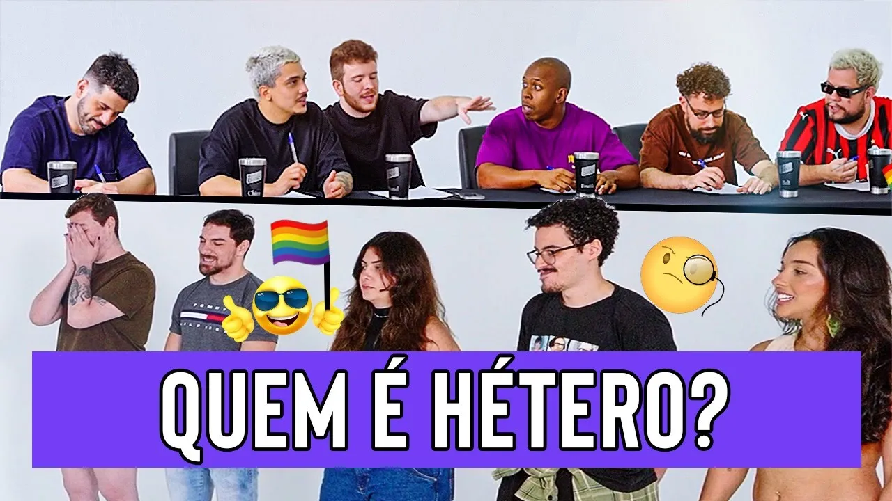 nós somos aqueles caras e hoje tentaremos descobrir quem é hétero cinco participantes quatro impostores e apenas um que tá querendo enganar a gente Será que conseguimos acertar vem [Música] [Aplausos] descobrir Opa [Música] Opa obrigado pelo tempo de vocês e hoje a gente tá aqui para descobrir o que gente quem é étero quem é étero você conseguiu ver alguma coisa eu não sou cara meus olhos não julgam Ram Na verdade eu já tô julgando todo mundo para min é dificuldade é achar o É e vamos começar P pelo básico né Por favor nome e idade de