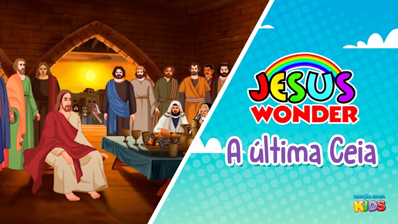 um certo dia a jesus vocês conhecem jesus não é jesus esse homem que olhar bonito importante chamou seus discípulos para uma reunião vocês sabem quantos discípulos eram era um dois três quatro cinco seis sete meu deus quanta gente oito nove dez onze doze jesus esse homem aqui tinha 12 discípulos e ele convidou os 12 discípulos para uma reunião e ele fez um jantar diferente nesse dia ele reuniu os 12 ao redor da mesa e disse assim vai é algo muito importante nesses dias eu vou morrer vocês lembram da história que a tia tati contou a