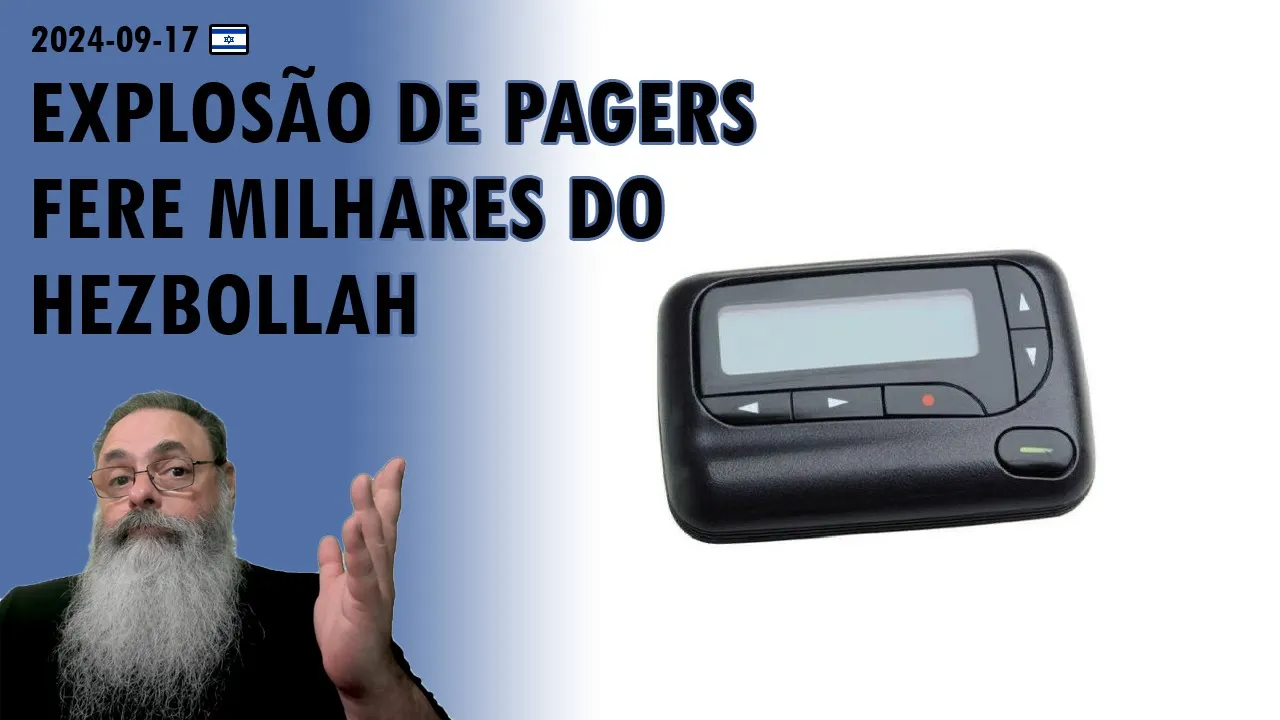 Esse é o mundo em revolução e nós vamos falar sobre a situação em Israel hoje dia 17 de setembro de 2024 meio-dia aqui no Rio de Janeiro 6 horas da tarde lá em Jerusalém no momento que eu gravo esse vídeo e a notícia do dia hoje é o ataque dos pagers né É lógico tem um monte de operação israelense aqui a gente vai falar sobre faixa de gaza sobre judéia e Samaria sobre a tentativa dos eh dos eh dos ataques do grupos terroristas de fazer um ataque com uma bomba contra um agente israelense mas o