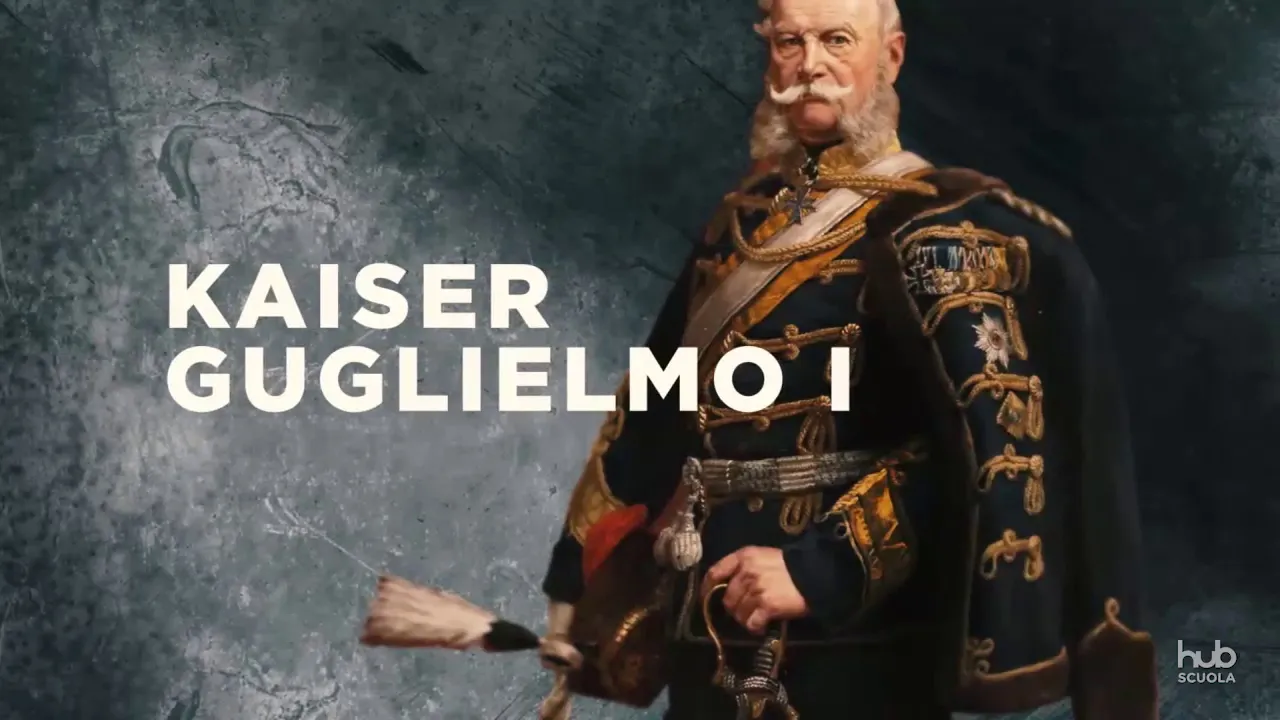 indebolire l'austria che perde il veneto la prussia è ormai leader della nazione germanica per contrastare la francia nel 1870 si smarca provoca un incidente diplomatico napoleone iii dichiara guerra alla puglia ma viene battuto a mezzo e poi a sedan la sua sconfitta sancisce la fine del secondo impero e la nascita della terza repubblica la questione tedesca era stata decisa dalla volontà e dal piano di un individuo nessun altro con lui il 18 gennaio 1871 i principi tedeschi proclamano la nascita dell impero germanico ed eleggono guglielmo primo kaiser ispirato da valori nazionalisti e conservatori bismarck stipula