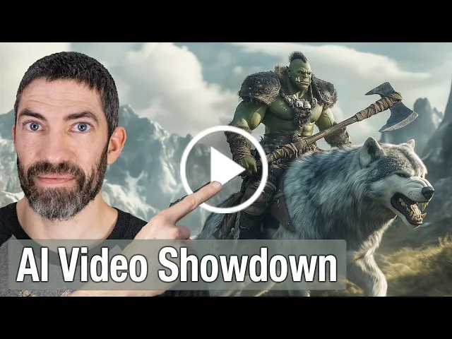 give number one to cing I like the runway shot more but clling had better prompt adherence since he got the lion statues then pix firste then Luma right now now I'll step it up quite a bit a dynamic shot of an orc holding a battle axe and riding a direwolf Runway was a total fail here it missed pretty much every part of the prompt no battle axe he's not riding the wolf total fail clling adhered to every part of the prompt and has a lot of dynamic movement it does seem like it's pulling from some