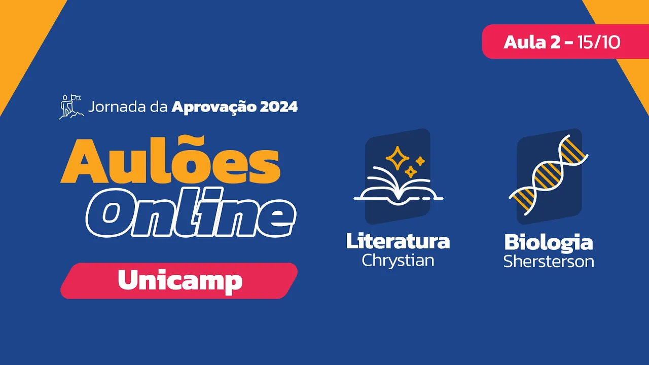 [Música] [Música] Boa noite pessoal tudo certo seja bem-vinda e bem-vindo a mais uma noite dessa nossa preparação acho que eu tô com o microfone muito para cima aqui pronto a essa nossa preparação rumo à sua aprovação ao seu lugar aí na universidade Lembrando que eu sou o Sandro sou o coordenador aqui do poliedro de Campinas estou te Acompanhando ao longo dessa semana que antecede aí a realização da primeira fase da Unicamp e com muita felicidade te recebo nesse nosso segundo dia de aulões Unicamp para hoje nossa programação envolve a aula de literatura fechando aí os