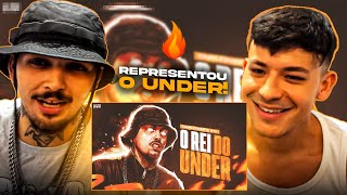 E aí nós não se trombou na chave né e eu já tinha saído da Batalha tava de canto olhando assim falando [ __ ] Foi legal ter ficado mais um dia para rimar tá tá tá só não te atrapalhando mas quando você viu ele rimando Você já olhou falou isso então o ponto foi que que eu vi ele pass Tipo o cabelo Coqueirinho lá assim amarrado para cima pass suave rolou uma frase já tinha a mala já tinha a marrinha já mano ele já era um cara bonitão falar mítico pode sempre rimei muito irmão é