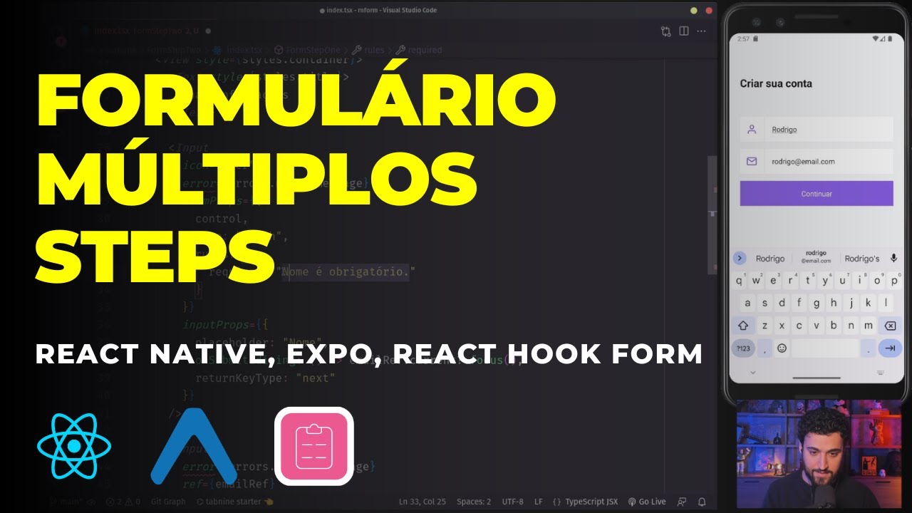 a gente já basicamente finaliza a parte do select que era algo mais chatinho vamos se dizer de criar né então ficou sensacional porque a gente criou algo personalizado um componente que pode ser chamado quantas vezes quiser com base nas propriedades e ser reutilizado falta agora só o botão então agora a gente pode o botão ele é igual da página anterior aqui ó né do avançar Então vou Lá na nossa página step vou pegar o nosso pressable que é o botão ó Vou colocar aqui ó em cima da da scroll viw ainda vou colocar o nosso