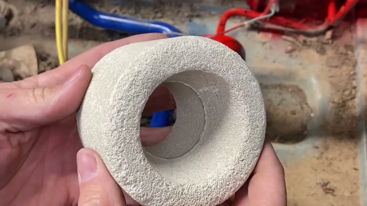 it filters the moisture out it also helps filter some of the contaminants out as that refrigerant continues to flow here's another example of this design material this came out of a commercial unit this actually fits inside of a canister but the refrigerant always filters from the outside through this material and then from the inside it actually cut it in half so you can see it simply looks like a type of rock but it absorbs h2o out of the liquid refrigerant so the liquid refrigerant flows through this material now they don't always look like this and