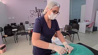 certo vou eu vou fazer isso aqui pra câmera ver mas você não vai fazer isso aqui com a bingola do paciente não ó movimento circular certo fazendo movimento circular trocou botou no lixo contaminado já tá aqui no na sua na palma da sua mão ó já tá na palma da sua mão e você vai fazer isso aqui até chegar na base do pênis se você quiser pode fazer Óbvio trocando sempre de gas você quiser você pode fazer isso aqui também nessa região supr pública aqui nas laterais tá não tem problema nenhum não você realizar isso