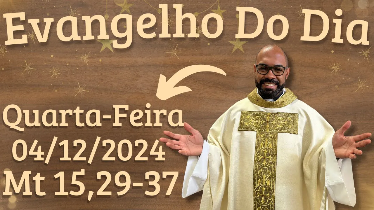 quarta-feira dia 4 de dezembro seja muito bem-vindo agradeço Mais uma vez você que abriu esse vídeo e quer também se alimentar da palavra de Jesus no Santo evangelho Deus sempre te ilumine que o Espírito Santo Te capacite também a crescer cada vez mais no conhecimento e na vivência da palavra do evangelho hoje nesse tempo do advento ouvirei os Mateus capítulo 15 Versículos do 29 ao 37 o senhor esteja convosco ele está no meio de nós proclamação do Evangelho de Jesus Cristo segundo Mateus glória a vós senhor naquele tempo Jesus foi para as margens do mar