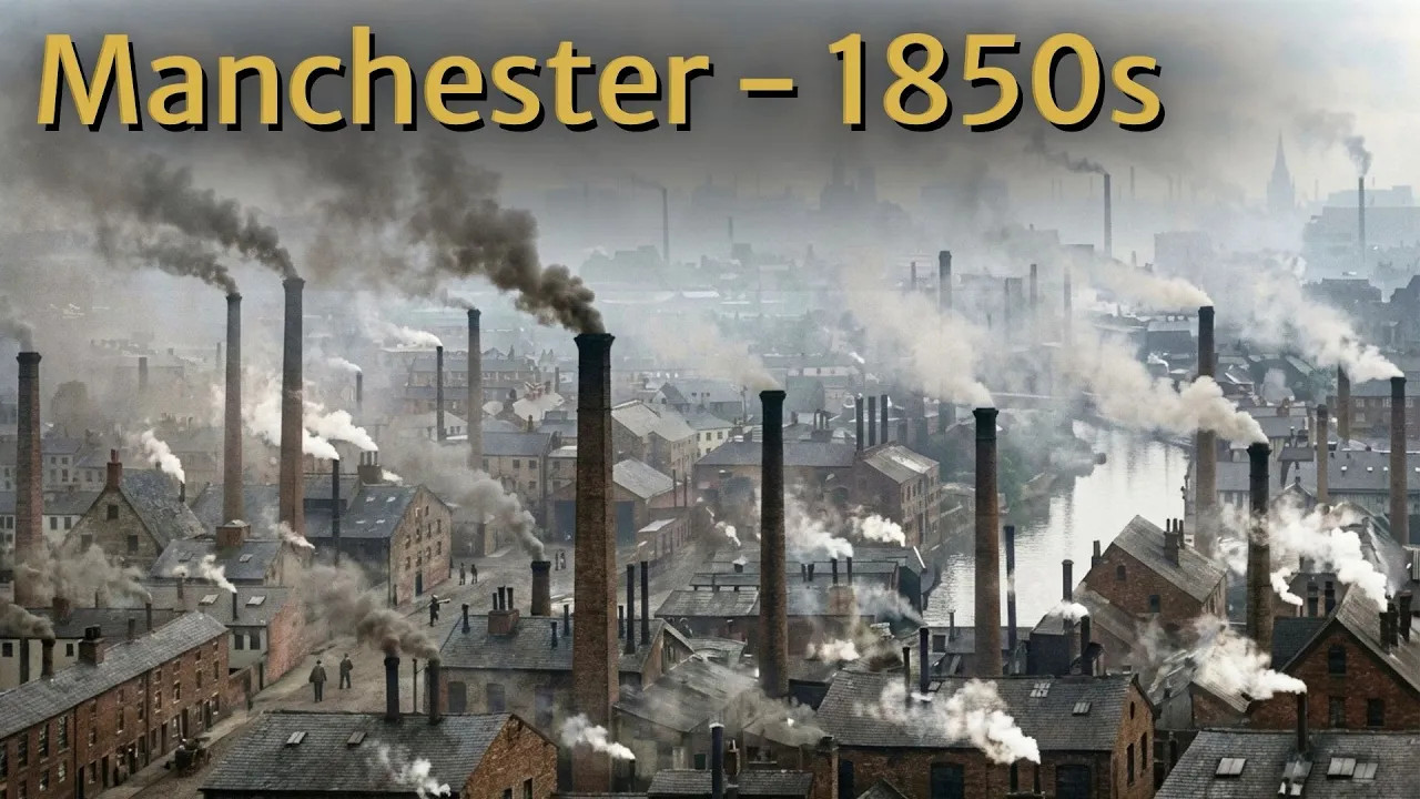 By the middle of the 19th century, Manchester had become something new in human history. A city built entirely around production. The skyline was dominated by mill chimneys.