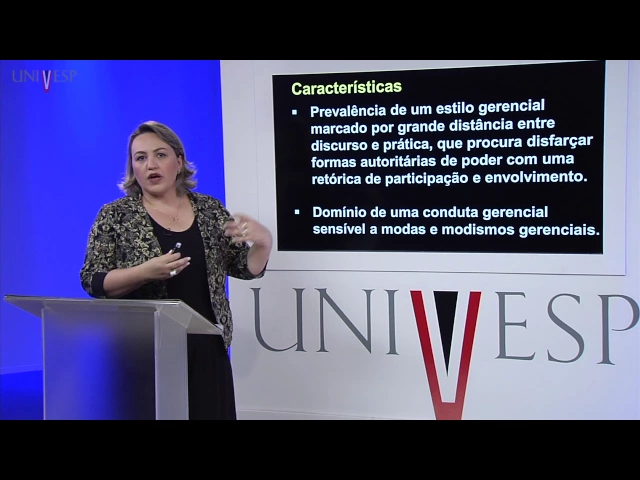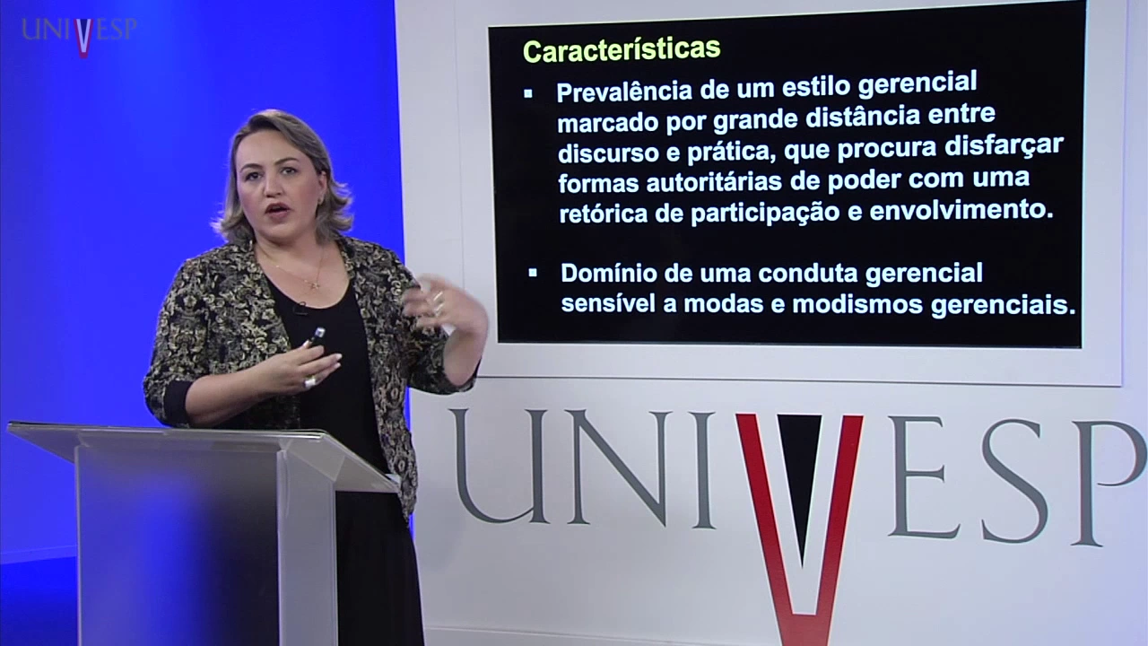 estilo gerencial marcado pela distância entre o discurso e a prática ou seja aquilo que eu faço e aquilo que eu realmente falo o fazer e o falar são distantes pro administrador por quê Porque ele procura disfarçar questões mais autoritárias no seu discurso né através de eh de um discurso mais Ameno do que uma prática e uma uma conduta gerencial que utiliza muitos modismos surge uma nova ideia Geralmente se implementa e necessariamente a nova ideia tem que ser avaliada ao contexto da organização se para aquela organização serve se ela é adequada àquela situação aquele contexto daquela