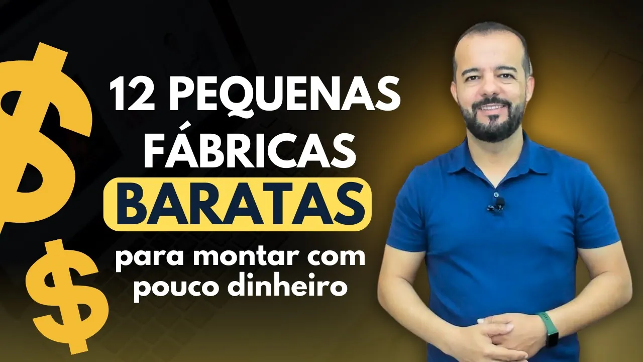 procurando por uma fábrica barata para montar Veja agora as 12 melhores opções de fábricas para você iniciar o seu próprio negócio são as opções com melhor custo-benefício fique comigo até o final e aproveite para acessar um vídeo completo incluindo um plano financeiro para cada uma dessas fábricas o link está na descrição do vídeo ou no card aqui em cima [Música] [Aplausos] Olá aqui é o Vinícius Gonçalves e eu Já ajudei milhares de empreendedores a iniciarem seus próprios negócios e você é novo aqui no canal aproveite para se inscrever e receber o nosso melhor conteúdo assim que ele for publicado para isso ative também as notificações a partir de agora vamos direto para as dicas especiais Que Nós criamos para você iniciar a sua fábrica barata e montar o seu negócio de sucesso começar o próprio negócio é o sonho de milhares de brasileiros mas grande parte/ na falta de Capital financeiro a boa notícia é que existem opções de fábricas baratas para montar e ter um bom retorno para posteriormente expandir e transformar em um negócio de médio a grande porte para ajudá-lo eu selecionei as opções de fábricas baratas com boas chances de sucesso espero que goste ai muitas das opções que eu vou citar já criamos um vídeo exclusivo sobre a ideia de negócio com um plano financeiro completo tirando dúvidas e com dicas exclusivas Então se gostar de confira nos cards que vão aparecer aqui em cima à direita ou pelo link na descrição do vídeo preparado Vamos às fábricas um fábrica de Esponja uma mini fábrica de esponjas com pouco investimento pode ser aberta com aproximadamente 10 mil reais a máquina para cortar e fazer Esponja gira em torno de 6 a 7 mil reais dependendo do modelo e marca o restante do valor será necessário para o estoque inicial no card aqui em cima você pode conferir o vídeo completo de uma fábrica de Esponja porém é de médio porte basta adaptar para sua realidade dois fábrica de pão de queijo a fábrica de pão de queijo de médio porte existe um investimento próximo a 35 mil reais já uma versão reduzida mais barata e pequena pode ser iniciada com cerca de 10 mil reais a expectativa de faturamento bruto é de 10 a 12 mil reais é relativamente barato principalmente se iniciar em casa sozinho para depois expandir neste caso é possível começar com menos de r$ 6. 000 4 fábrica de produtos de limpeza a fabricação de produtos de limpeza pode ser um bom negócio mas tome cuidado tem de focar em conquistar clientes esta costuma ser a parte mais difícil o investimento médio é de 10 mil reais com uma expectativa de ganho líquido de dois a 2. 500 5 fábrica de tijolos ecológicos os tijolos ecológicos estão ganhando espaço e a demanda tem crescido principalmente pelas vantagens do tijolo ecológico tais como o custo reduzido e o isolamento térmico uma prensa manual de tijolo ecológico custa r$ 6.