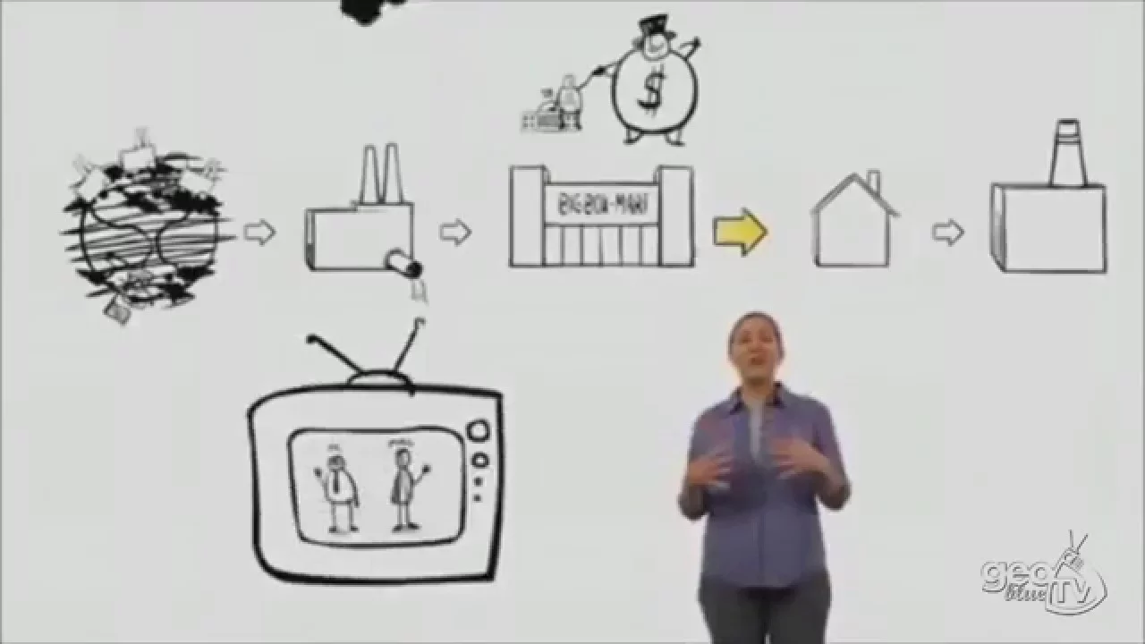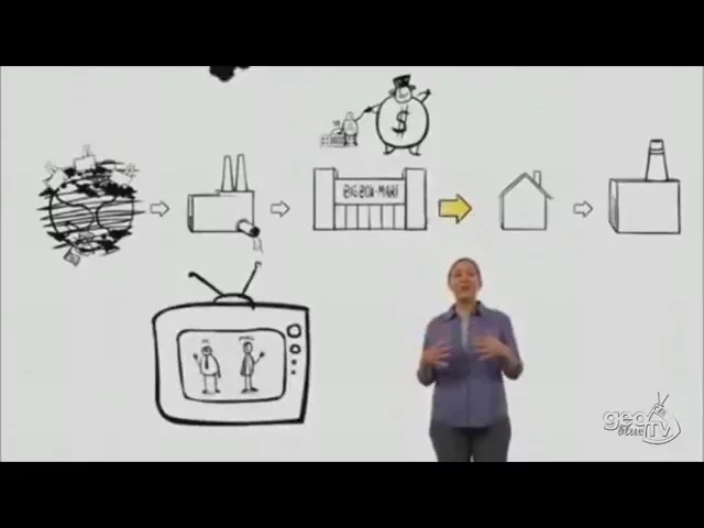 pistas de onde vêm as nossas coisas e para onde vão e sabe o que eu descobri esta não é toda a história falta muita coisa nessa explicação em primeiro lugar neste sistema parece que está tudo bem sem problemas mas na verdade é um sistema em crise porque trata-se de um sistema linear e nós vivemos num planeta finito e não se pode gerir um sistema linear num planeta finito indefinidamente em todas as suas etapas este sistema interage com o mundo real a vida real não acontece em uma página em branco interage com a sociedade esculturas economias