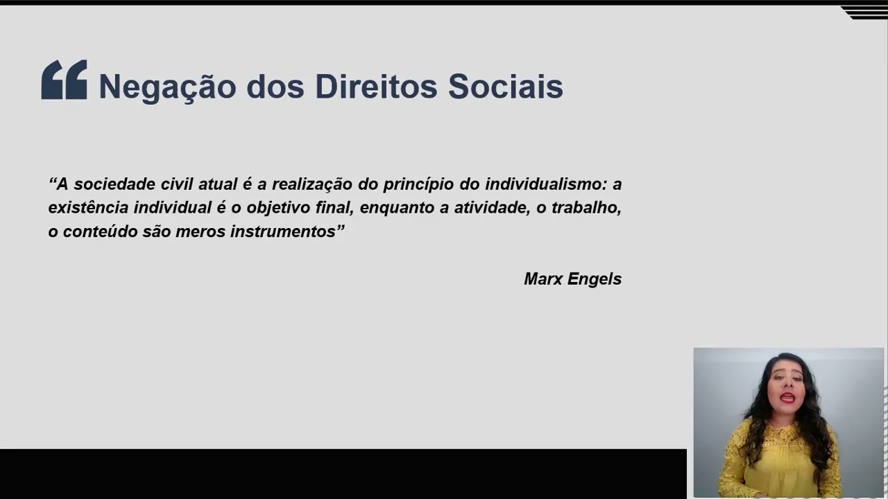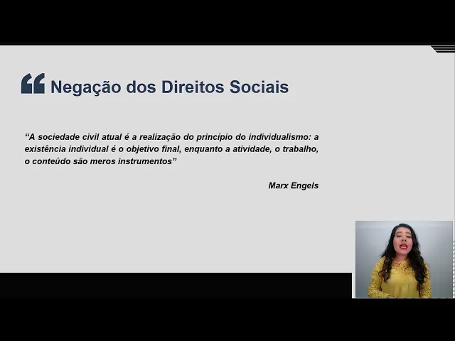 Prezados(as) discentes, essa legenda foi gerada automaticamente e em breve passará por revisão para ajustes ortográficos e gramaticais. Olá, eu sou a disciplina de Políticas Sociais e Direitos Humanos, e essa sua aula de construção de direitos sociais parte da Professora Gabriela Oliveira. Eu vou estar com você nesse momento.