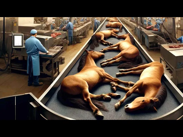 on the Green Pastures of Rural America farmers are ready for a new day of work they stuck with their horses crossing the vast grasslands follow the footsteps of American farmers to explore the Journey of raising and processing millions of [Music] horses the first horses are believed to have appeared in America around 1493 by the 1920s the number of horses in the United States is believed to have peaked at about 25. 3 million horses the image of American Cowboys and horses has become a symbol of the Wild West according to the latest USDA statistics as of June 2022 the current number of horses in the country is approximately 9. 2 million the number of licensed horses on farms is about 450,000 with many different sizes it is estimated that 21,000 FES are born on American Farms each year Texas is the state with the largest horse population in the country with 930,000 horses next on the list is California with 650,000 horses and Florida with 500,000 horses horses usually breed in the spring from February to May when the weather is warm and horse food is abundant which creates favorable conditions for the embryos and development of the horses in their mother's womb a horse's estris period lasts about 21 days of which about 47 days is the time they are capable of conceiving the average newborn fo weighs about 110 lb and they can stand almost immediately after being born this is a healthy Instinct of those who are accustomed to roaming the step after giving birth the mother horse will lick the F to clean it and help it stand up about 2 to 3 weeks from birth f are usually placed in separate stalls to avoid the risk of injury and infection for complete warmth during development the ideal temperature should be between 60 and 70° F A fo needs to drink 25 to 35 lb of milk per day which is equivalent to 30% of its body weight after this period the mother horse and fo can be taken Outdoors to get used to the natural environment fos usually live with their mothers for about 6 to 8 months to learn how to eat grass and take care of themselves this process is closely monitored by Farmers because there have been many cases of FS being trampled to death by a herd of other horses when the mother horse was not healthy enough to protect her Offspring caring for horses requires a deep understanding of nutrition because they eat a variety of grasses herbs and concentrates to ensure energy balance fiber and protein are important especially on hot days in addition to preserving quality to breed horses American farmers regularly buy additional fos in addition they also provide them with a large and Lush field if pastures cannot produce enough grass year round farmers will have to pay between 400 USD and 500 USD per month to feed a horse like many other livestock species building stables for horses also has many important effects in raising and managing the farm besides Stables Farmers regularly groom them and keep them clean or provide them with Medical Care Health is a condition to ensure that grazing activities take place smoothly farmers are practicing branding on their horses this activity helps them easily control the horses and is also necessary to register with the local horse breeding management [Music] organization this is a herd of horses in Nevada that every morning they will be released to pasture by the Rancher their horses will roam freely all the ponies will come along as training they are prepared for trips on the step currently in Nevada there are about 78,000 horses raised on more than 3,000 Farms of varying sizes in addition Nevada is also famous for having the largest number of wild horses in the country with about 42,000 wild horses in California approximately 2.