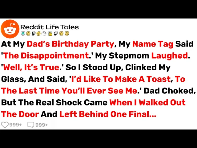 at my dad's birthday party my name tag said the disappointment my stepmom laughed well it's true so I stood up clinked my glass and said I'd like to make a toast to the last time you'll ever see me dad choked but the real shock came when I walked out the door and left behind one final I'm 32f and if you asked my dad he'd probably tell you I'm his biggest disappointment not because I'm in trouble with the law not because I'm jobless not because I've done anything actually bad but because I chose to live my