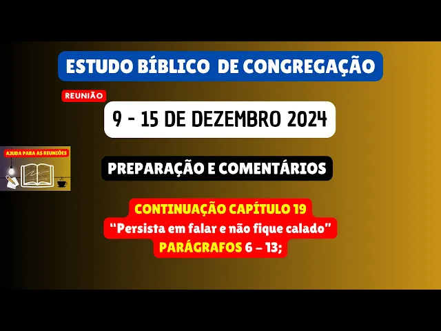 Neste vídeo Vamos Fazer Uma Breve análise e preparação do estudo bíblico de congregação que nesta semana será a continuação do Capítulo 19 do livro de testemunho Cabal sobre o reino de Deus especificamente Vamos estudar os parágrafos 6 a 13 portanto para aqueles que ainda não fizeram se inscrevam no nosso canal deixem um gostei faça um comentário quando você comenta em nossos vídeos YouTube entende que nossos vídeos são de relevância são de importância e isso gera enganjamento ou seja o vídeo fica mais vezes disponível na página inicial de YouTube facilitando A pesquisa de outros irmãos que