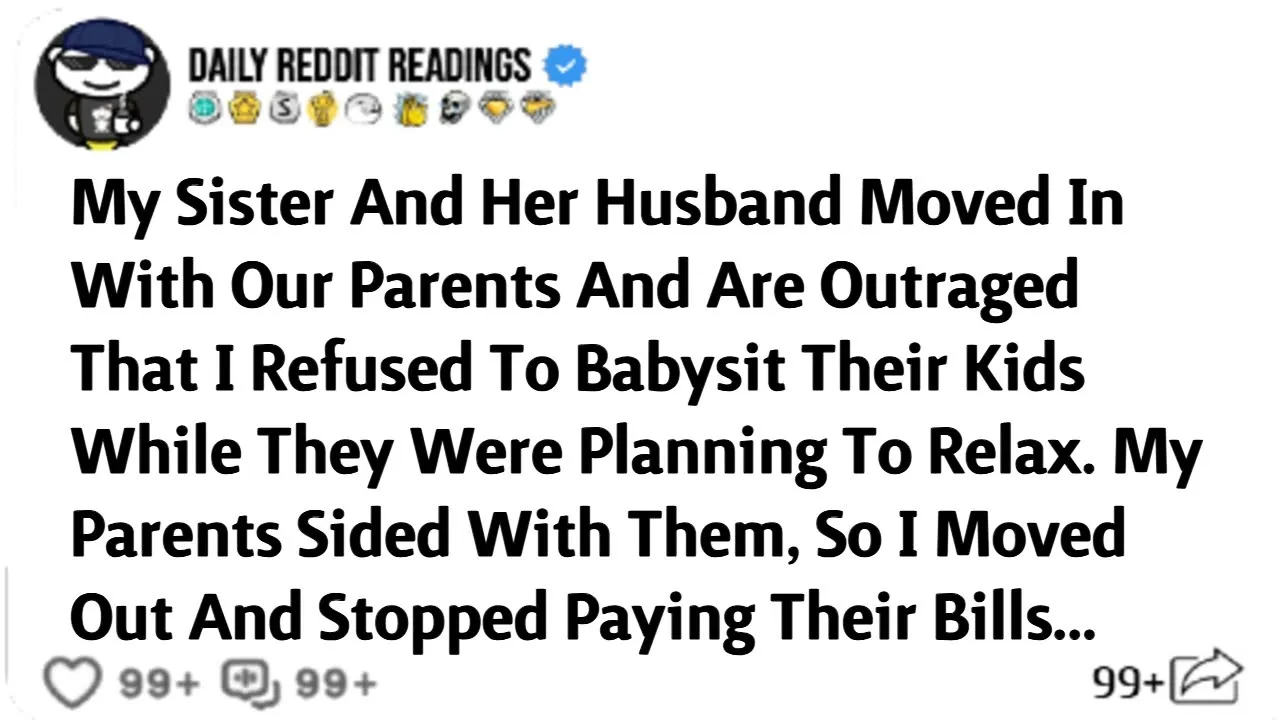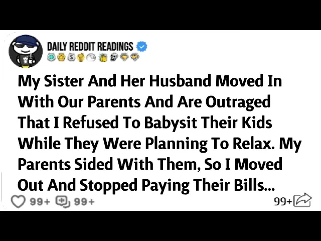 my sister and her husband moved in with our parents and are outraged that I refused to babysit their kids while they were planning to relax my parents sided with them so I moved out and stopped paying their bills fresh out of college with my business degree I found myself back in my childhood home I'm Anna 22 years old and honestly I hadn't planned on moving back in with my parents but here I was the job hunt didn't take long thankfully within a week I landed a position at Davidson marketing with a pretty decent salary and