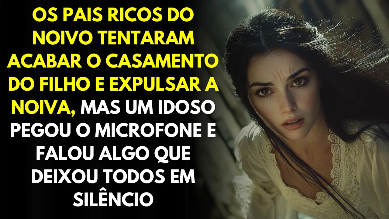 os dias de sua vida o padre aceito respondeu Isabela com o coração batendo acelerado o padre sorriu e fez sinal para que eles trocassem as alianas mas no exato momento em que se preparavam para celar o casamento com o beijo um ruído alto interrompeu a cerimônia o som estridente de um microfone sendo ligado chamou a atenção de todos os presentes confusos os convidados começaram a se virar em direção ao palco onde a Banda estava instalada lá Manuel o caseiro da Fazenda segurava um microfone com as mãos trêmulas mas seu olhar estava fixo e determinado eu