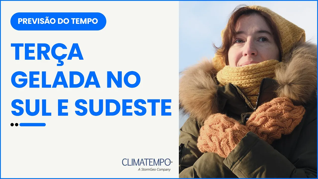 a semana começou com temperaturas baixas e pouca chuva nas regiões sul e sudeste do Brasil nós temos um sistema de alta pressão no oceano jogando ventos frios pro continente e afastando as nuvens mais carregadas e amanhã pouca coisa muda o amanhecer será gelado na terça-feira em Áreas do Sul e Sudeste do Brasil com destaque para a Serra Catarinense que tem previsão de geada com mínimas entre 3 e 5º entre São Paulo Rio de Janeiro e Minas Gerais as menores temperaturas serão registradas na Serra da Matiqueira com as mínimas inferiores a 10ºC entre o norte de