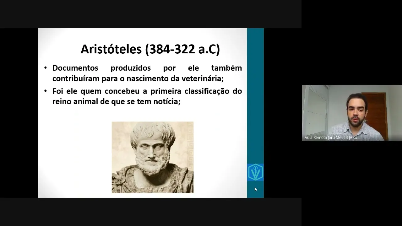 Diagnóstico tratamento e prognóstico tiver início há 4 mil anos antes de Cristo tá isso é de acordo com o partido de carrão foi descoberto no Egito em 1890 então a gente vê aí relatos descrições LED de um tempo bem antigo do início das práticas veterinárias né a gente também tem algumas coisas descritas no código de hamurábi enfim coisas muito antigas mas que relatam realmente né registros históricos que mostram como começou toda essa prática Veterinária É então Aristóteles ele foi um branco esse negócio essa dor cientista que teve uma grande contribuição para a humanidade né dê