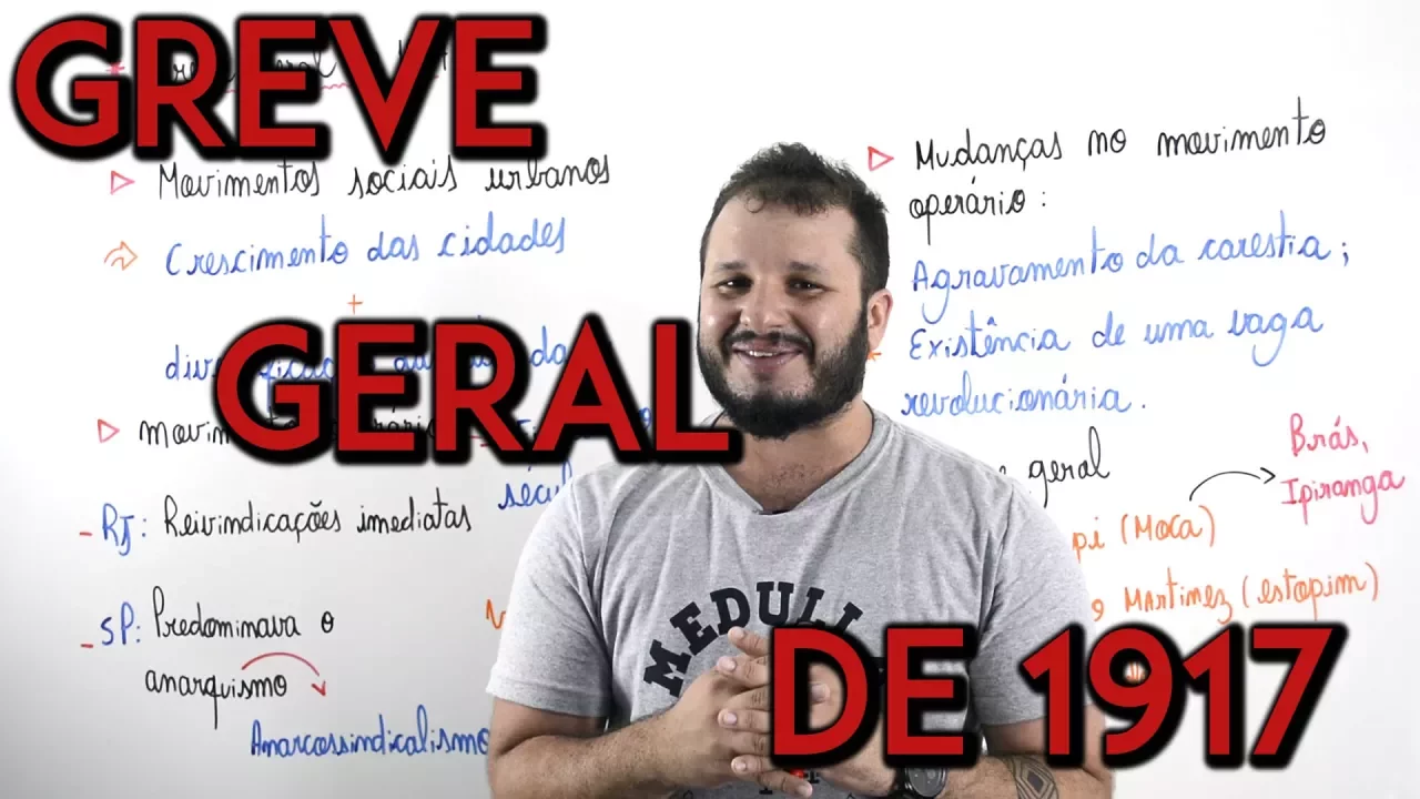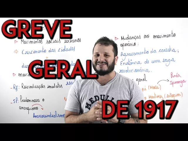 concurso a nossa aula de hoje sobre a greve geral de 1917 sabemos que no contexto nacional e no contexto internacional o ano de 1917 é muito importante não se preocupe porque nós preparamos estamos preparando uma aula maravilhoso sobre revolução russa a aula que vai abalar as estruturas do seu coração mas a gente vai falar hoje do contexto brasileiro e falaremos sobre a greve geral de 907 o desafio agora você está assistindo às aulas procurei no youtube onde você vai ter com nível de especificidade que a gente vai ver hoje uma aula sobre a greve de