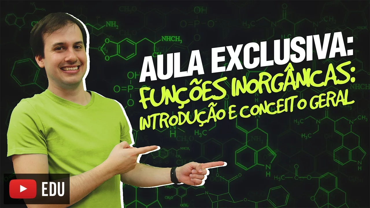 [Música] fala GS Nobre tudo bem preparado para reagir bem-vindo a mais uma aula aqui no químic ação e nós vamos começar o estudo agora das funções inorgânicas O que são as funções inorgânicas por que que eu divido os compostos em grupos eu agrupo eles Olha só G São perguntas boas presta atenção o homem ao passar dos anos nós já descobrimos e sintetizamos mais de 18 milhões de substâncias químicas olha 18 milhões é muita coisa Imagina a gente ter que estudar 18 milhões um por um é doidura não dá então o que que a gente faz