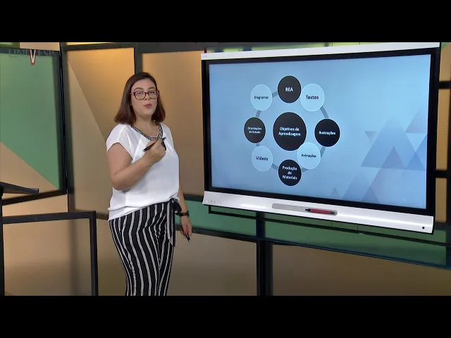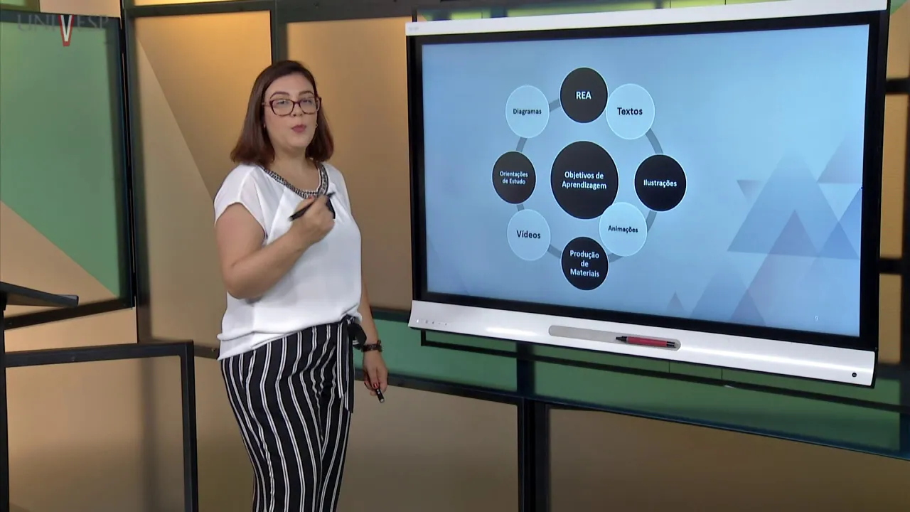 COM CONTEÚDO QUE EU ESTOU TRABALHANDO, COM O OBJETIVO DE APRENDIZAGEM QUE EU TRACEI NO INÍCIO DA MINHA DISCIPLINA E COM OS RECURSOS DISPONÍVEIS. A GENTE SEMPRE TEM QUE PENSAR NESSA ARTICULAÇÃO PORQUE SENÃO VIRA UM PASSATEMPO E NÃO UM MOMENTO DE APRENDIZAGEM. CONTINUANDO AQUI NA UNIVESP, NÓS TEMOS ESSA EQUIPE MULTIDISCIPLINAR QUE NOS AUXILIA, NÉ, E NOS CAPACITA NA PARA A CRIAÇÃO DESSES RECURSOS, ENTÃO, EU COMO PROFESSORA POSSO PROPOR A CRIAÇÃO DE UM JOGO, A CRIAÇÃO DE UM RECURSO EDUCACIONAL ABERTO PARA MINHA DISCIPLINA, DESDE QUE, TENHA ESSA ARTICULAÇÃO: CONTEÚDO, OBJETIVO DE APRENDIZAGEM E RECURSO.