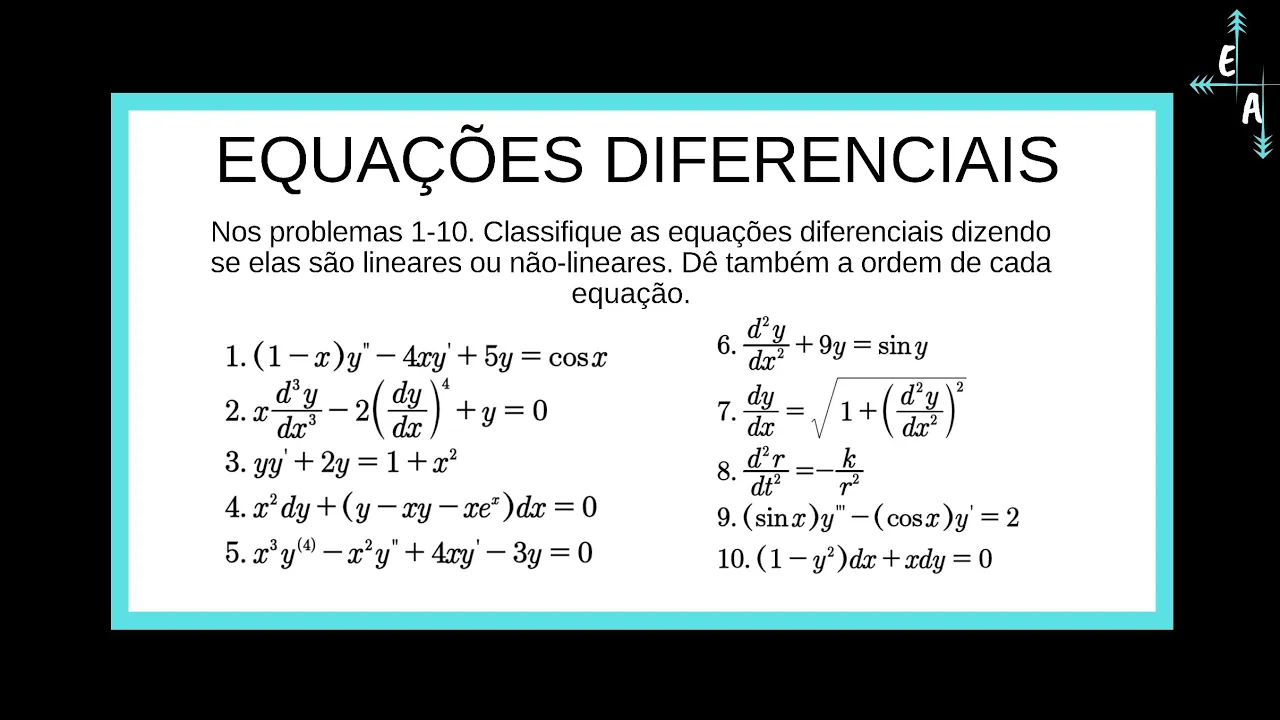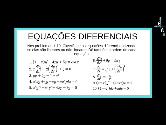 Equações Diferenciais - Linear ou Não Linear e Ordem - Exercícios 1-10 Zill 3ed