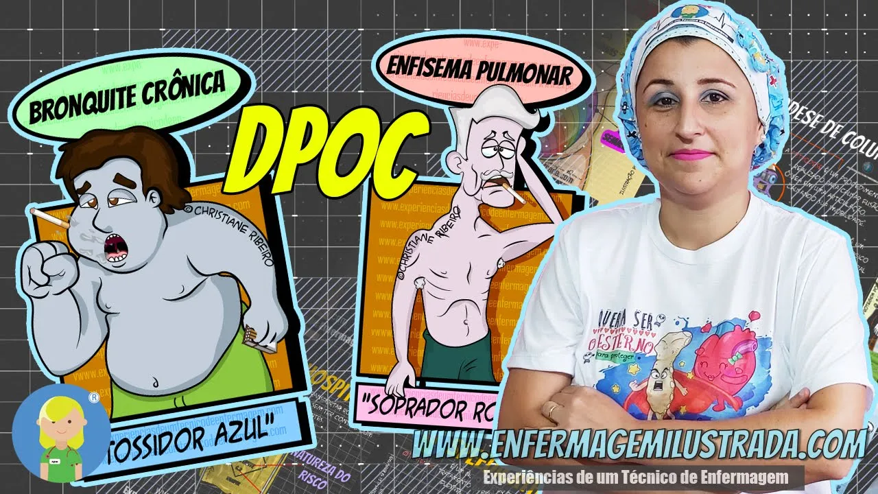 [Música] Oi pessoal tudo bem com vocês Você já ouviu falar em DPOC ou doença pulmonar obstrutiva crônica em trazer essa pauta que é importante né a gente entender os conceitos do DPOC e que dentro dessa patologia existe dois termos com momentos ditos né popularmente que eu vou explicar também mais para frente para vocês entenderem que vão pegar pacientes assim geralmente é corriqueiro tá principalmente nas UTI geral pacientes com esse tipo de quadro tá então o dpac nada mais é um termo usado né Por um grupo de doenças aí pulmonar e isso caracterizado como instrução crônica