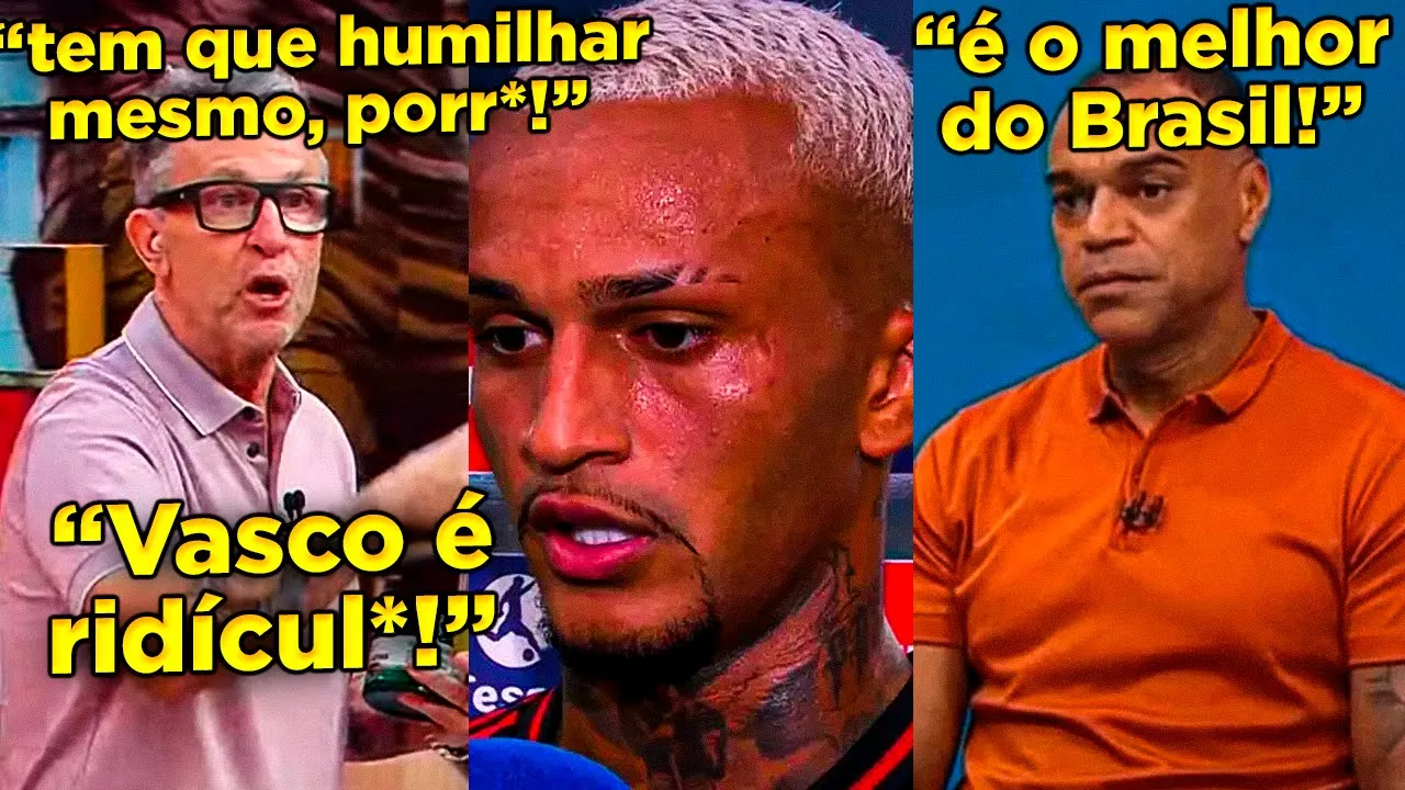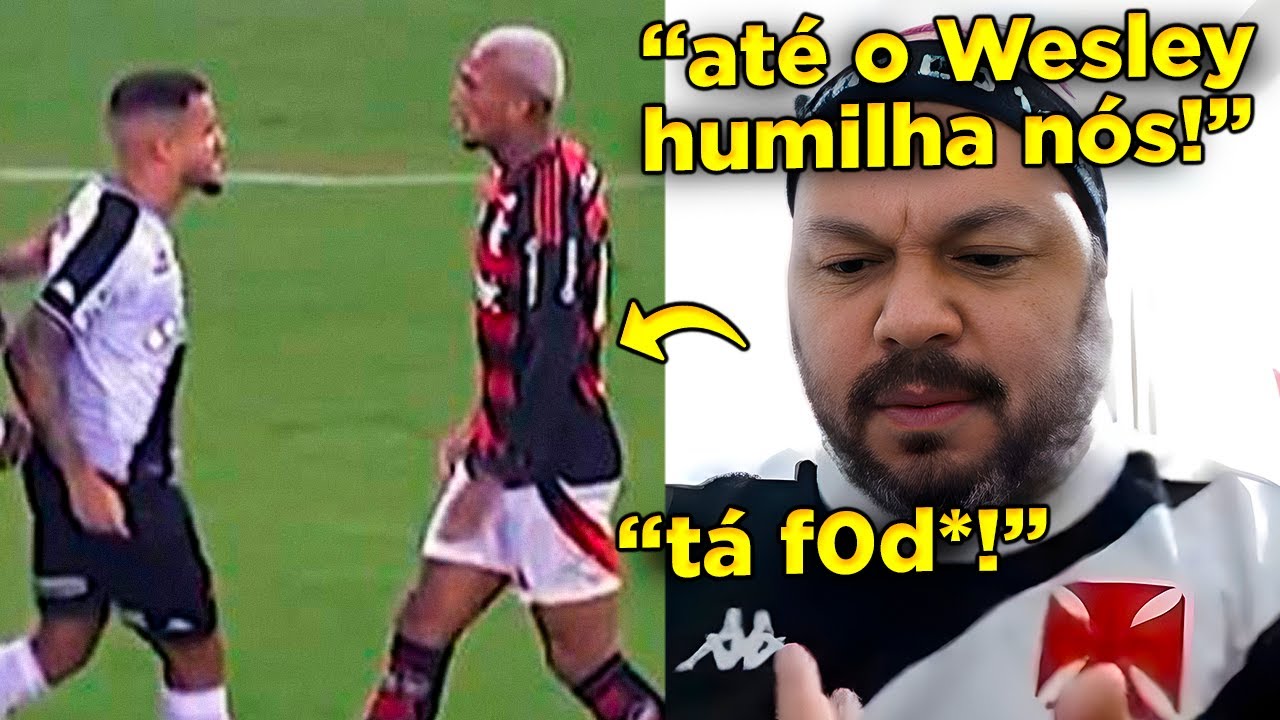dos jogadores do Vasco também com fase ruim 95 minutos erer dois a cabeça tava pesada a cabeça acho que não tava acho mas a desrespeito não cara a forma que ele dá a letra é tirando num uma onda é tirando uma onda mas assim cara a gente já viu tanto isso acontecer e o Felipe Luiz como líder e assim um excelente técnico que tá se mostrando você ele pôs panos quentes ali mas ele mesmo falou eu moleque já fiz também cara os caras são novos e esse Wesley tá voando né Tá jogando para caramba é