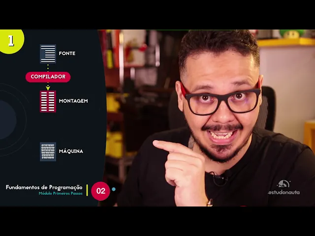 olá chegamos aqui há mais uma aula do seu curso básico de fundamento de programação e eu espero sinceramente que você tenha visto os dois últimos vídeos porque eles te dão uma base para você entender como é que a gente chegou até aqui e durante essa aula 02 do seu curso de fundamentos aqui do estudo a alta a gente vai ver como funcionam as linguagens o que eu não sei se você sabe existem vários formatos de linguagem e vários comportamentos que podem inclusive interferir na sua decisão em relação a usar ou não utilizar uma determinada linguagem