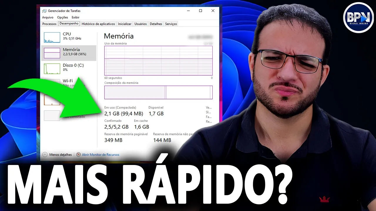 ficar mais rápido porque o Windows ele tá usando o recurso que você tem não tem coerência tá pessoal você ter bastante memória RAM disponível para ser usada e o Windows de repente usar pouquinho a memória RAM e não fazer o que tem que fazer e ficar o negócio lento sendo que você tem recurso para usar aí muita gente fala assim ah mas e pessoas que TM menos memória RAM tá pessoa que por exemp exemplo instalou o Windows 11 no computador que tem 4 GB apenas de Ram porque 4 GB que é o requisito mínimo exigido