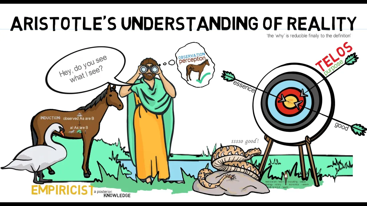 everything has a purpose or a t loss so he moves from looking at several examples to generalizing to all examples and this process is what we call the process of in duck where you move from one observation or a few observations to generalizing that all similar things will be like that as well the method of induction can be explained in this way all observed a are B therefore all a are B for example we might observe some swans and say all observed swans are white therefore we conclude that all swans are white Aristotle argued that