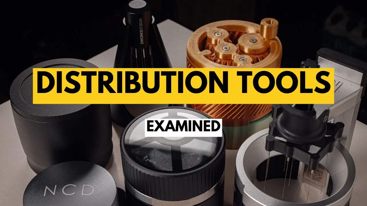 tap on the table as we saw in my previous video linked right there this gives me the most consistent extractions and so I double temped using The Descent next we have the moon raker which is automatic tool in a way I guess where you kind of spin it and all these different size needles are going in a spirographic pattern like a watch kind of with those gears throughout the bed at miscellaneous depths I took it in the Porta filter and then I would do half turn half turn that's one half turn half turn two and