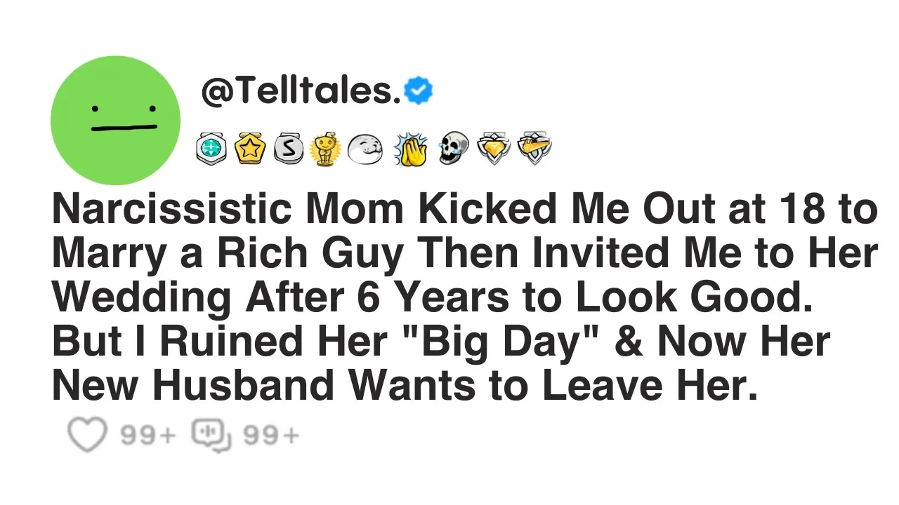 narcissistic mom kicked me out at 18 to marry a rich guy then invited me to her wedding after six years to look good but I ruined her big day and now her new husband wants to leave her hi so I'm 24f and for the last 6 years I have not been in touch with my mother 46f which is quite unfortunate since she was the only parent that I had my father passed away when I was really little maybe when I was around 4 years old so he was never in the picture he had an accident