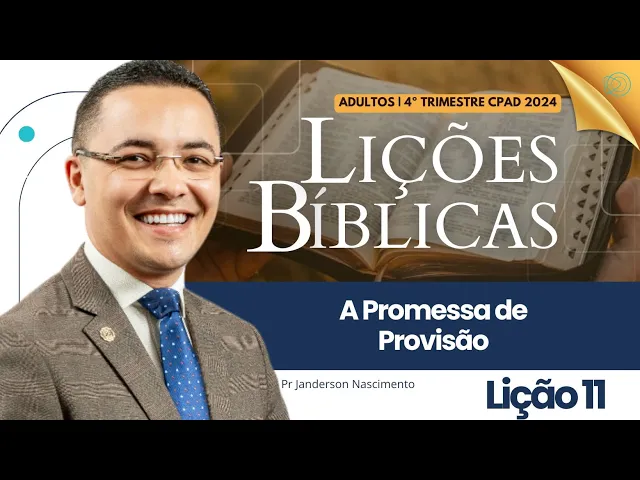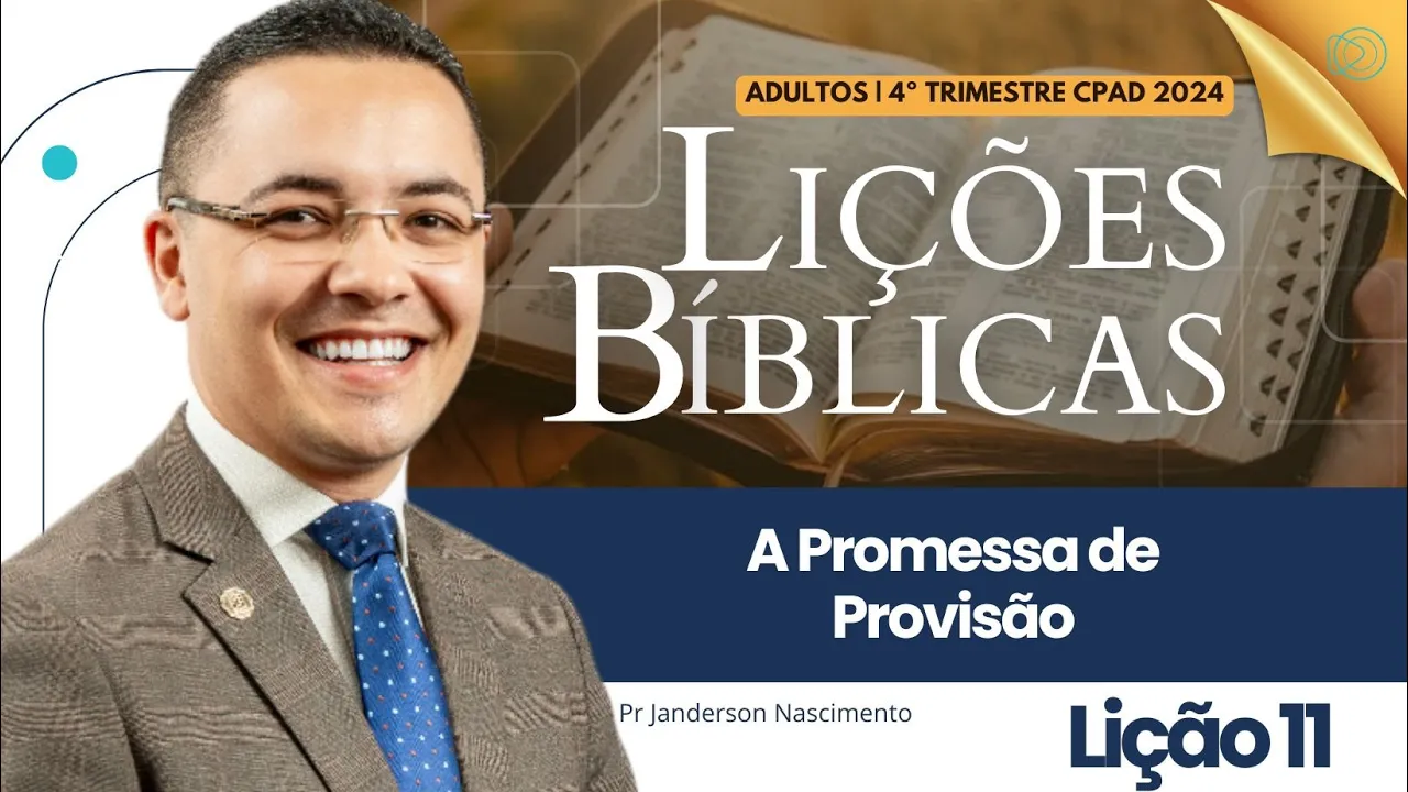 chegamos então na lição de número 11 aqui da classe dos adultos desse quarto trimestre da CPAD texto escrito comentado pelo pastor Elinaldo Renovato de Lima na lição 11 essa lição que cai no dia 15 de Dezembro nós vamos trabalhar sobre a promessa de provisão como Deus é provedor e vamos entender um pouco sobre a teologia da providência divina inicie a tua aula por algumas bases bíblicas a primeira delas é o texto aure que se localiza em Mateus Capítulo 6 Versículos 25 Parte a apresenta a verdade prática e a leitura bíblica em classe está em Mateus