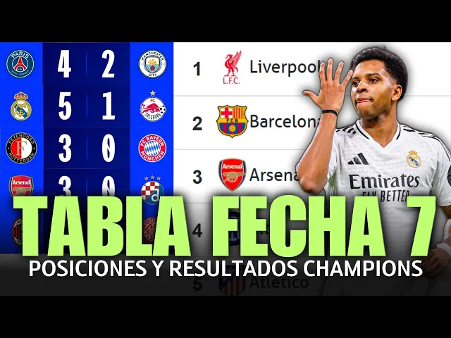 TABLA GENERAL Y RESULTADOS HOY FASE DE LIGA JORNADA 7 CHAMPIONS LEAGUE 2024/2025