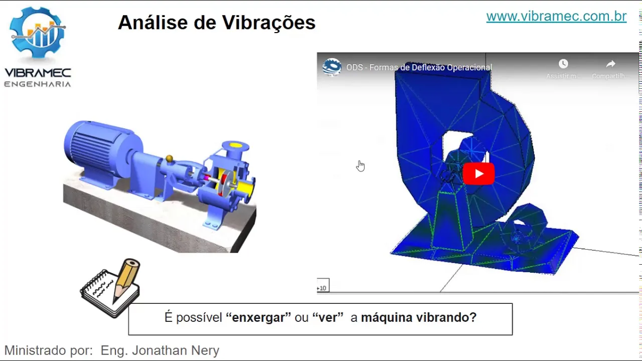 E aí Oi tudo bem pessoal meu nome é Jonathan e faço parte da vibramec engenharia este minicurso tem como tema os conceitos básicos em análise de vibrações é Lembrando que esse recurso é gratuito a emissão do certificado também gratuita se obtido aproveitamento mínimo de sessenta por cento as orientações importantes é é que papel caneta um lápis é que você possa realizar os exercícios durante a apresentação do minicurso quando necessário pause pause o vídeo anote é inclua uma dúvida que você possa ter Faça uma anotação de um pó de um ponto que considero importante naquele momento
