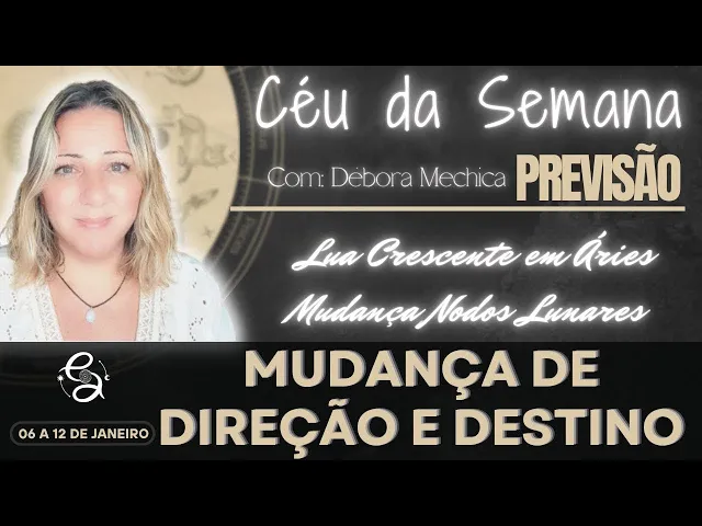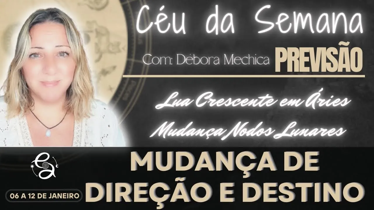 Olá pessoal aqui é Débora mesica do encontros astrológicos e hoje estou aqui voltando ao normal no canal com o céu da semana pra semana que vai do dia 6 de janeiro ao dia 12 de janeiro de 2025 Quais são os principais eventos as principais energias para essa semana que a gente tem pela frente bom a gente inicia a semana já numa fase crescente a lua vai formar uma quadratura com sol nós estamos na lunação capricorniana e a Lua Vai ficar crescente na energia Ariana imagina gente a fase crescente já é Aquela fase em que a