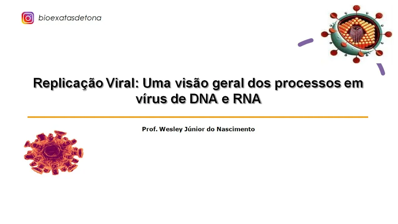 salve salve gurizada tudo bem com vocês aqui a pessoa Wesley essa nossa aula ser pelo processo de replicação viral nessa aula basicamente nós vamos fazer um esboço Geral do que que eu pro certificação geral tanto em vírus de DNA Quanto em vírus de RNA Então o meu intuito com essa aula é apresentar as estratégias globais a quais os vírus tantos de DNA Quanto de ar ganhar utilizam-se aí para fazer novas partículas virais belezinha então uma que a gente pode entender aqui com o processo de replicação viral basicamente o processo de aplicação geral nada mais é