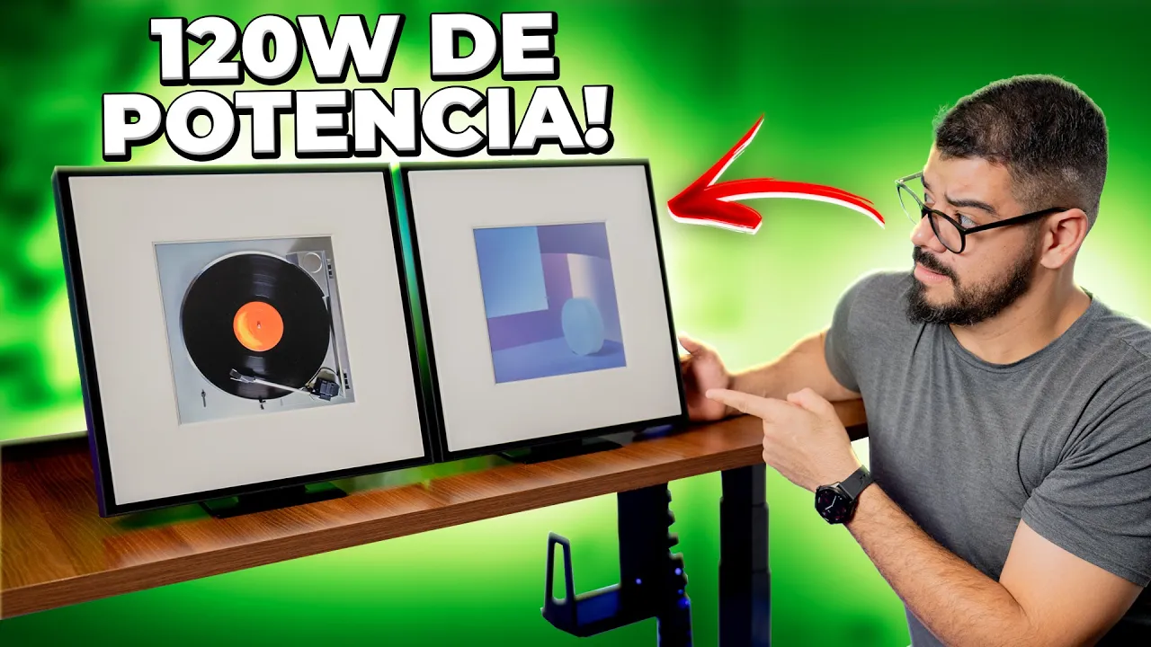 quadro as d frame cara são TVs lindíssimas que você olha vai parecer que é realmente um quadro que tá ali na parede se tiver uma imagem estática e quando você coloca um filme uma coisa para rodar ali você tem uma imagem impressionante e a proposta dessa caixa de som aqui é combinar com todo esse setup é claro tem um som bem bacana tem muita coisa legal que eu vou te mostrar ainda durante esse vídeo então se você não curtiu esse vídeo ainda deixa o gostei se inscreva no canal se você ainda não foi for inscrito