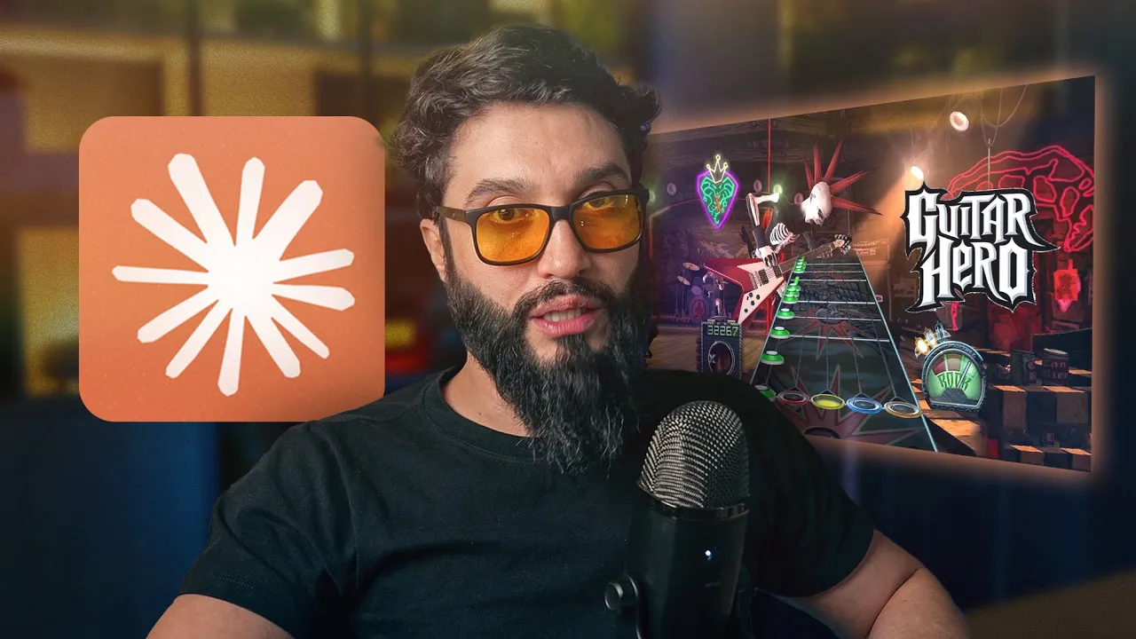 eu acabei de criar aqui um Guitar Hero ah basicamente com cloue e vários outros jogos Bom na verdade o começo desse vídeo merece ser até um pouco diferente pera [Música] aí bom deu anotar que faz tempo que eu não toco né essa guitarra aqui faz uns 5 anos que não sai da parede essa caixa nem sei qual foi a última vez que liguei nem sabia se tava funcionando eu acho que é melhor eu voltar pra ia que pelo menos na ia eu tenho mais prática bom deixa eu te mostrar aqui o que que eu tô