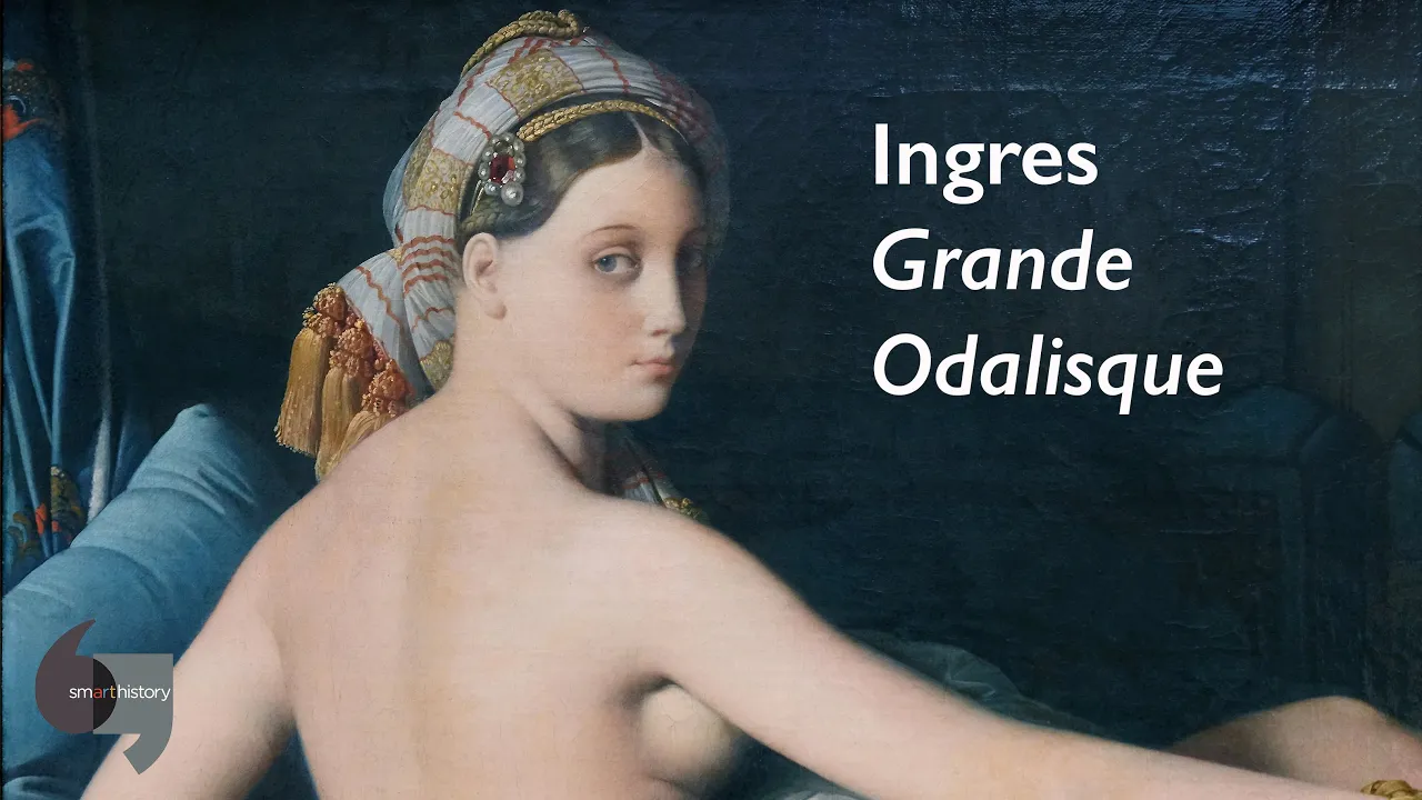 [Music] we're in the louvre looking at a painting by ang called the grand olisk odelisk simply means a woman in a harem but the western conception of what a harem was versus what harem actually was are two very different things and aang never went to the near east or north africa so this isn't based on observation this is entirely a western fantasy what we're seeing is this languid nude woman whose back is turned to us and yet whose body is flexible enough for her head to turn back and look directly at us with a slightly