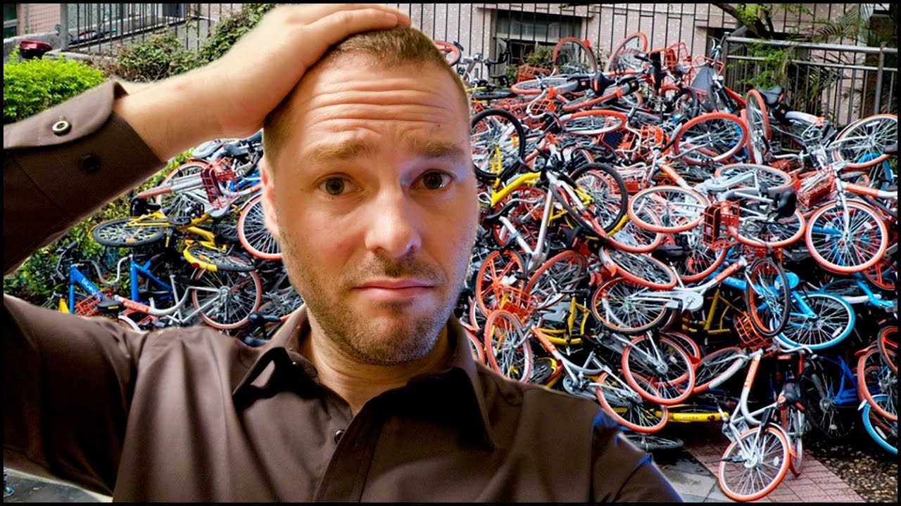 Companies just set up racks full of bikes all over a city. But these big racks won't fit everywhere, so sometimes you have to walk 10 minutes just to get a bike. The more interesting bike-sharing is dockless.
